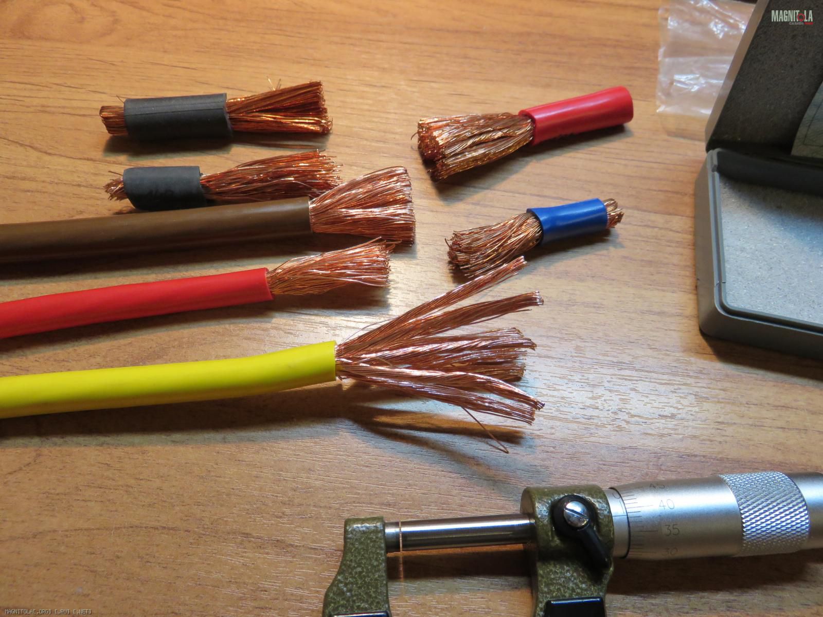 1. Медь. Рассмотрим из чего могут быть провода? Я в работе использую отечественные из меди марки М1. Хоть и ругают наши заводы - но медь они делать не разучились. В этом убеждаюсь и на производстве - где видел кучу аварий и применений наших отечественных проводов под нагрузкой превышающих допустимую - то есть на пиковых режимах и режимах КЗ. Так вот провода наши держат нагрузку пложенную им. Если они соответствуют заявленному сечению, но об этом ниже. Качественные брендовые авто провода - так же сделаны из меди - но само собой из страны Восходящего солнца (там их делать выгоднее). Лично у меня нет никакой предвзятости к ним и обсуждать какая там медь нет никакого желания, не в этом суть. Каждый выбор сделает сам. Но есть некачественные изделия (не всегда кстати дешевые) - в которых медь явно с примесями или вообще провода алюмо-медные... Такие я применять в авто не советую.