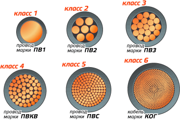 Теперь стоит указать на ОЧЕНЬ важную особенность связанную с разными классами гибкости проводов.