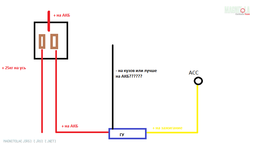 Фотоотчет комплекта подключения усилителя расположенного под сиденьем и ГУ - от АКБ "+" и "-".