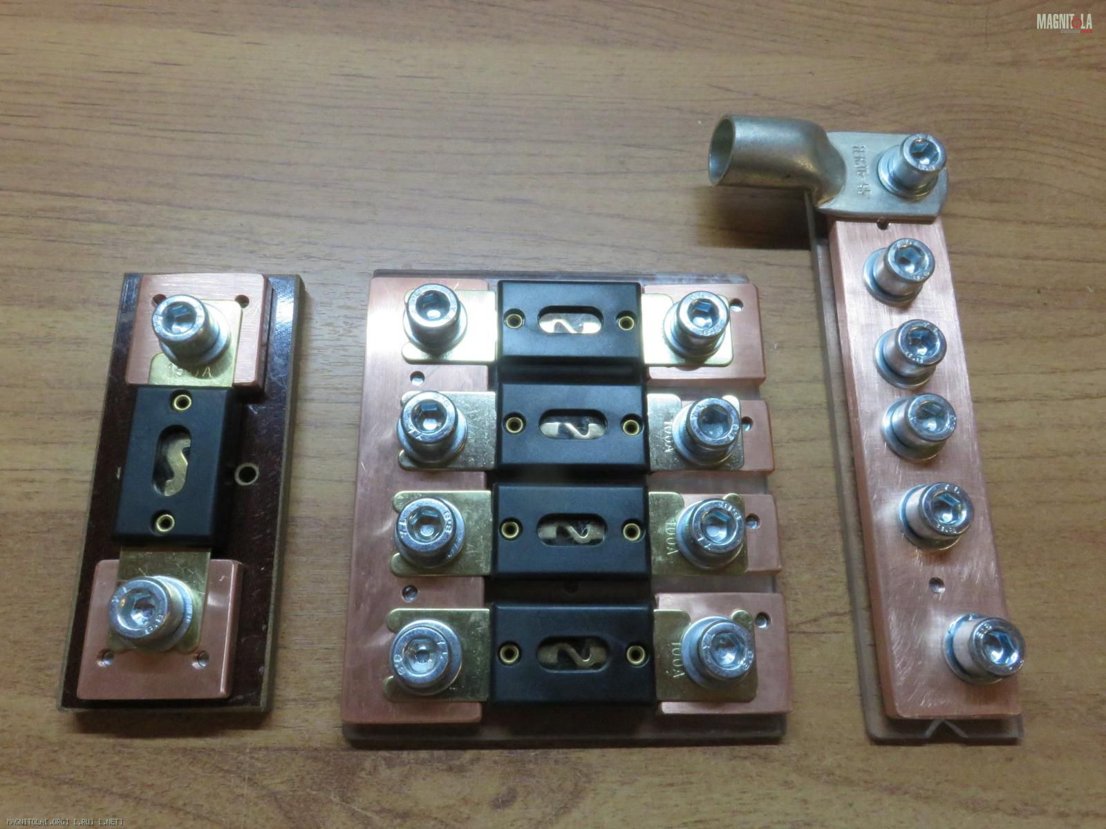 Комплект из блока на 1 пред у акб, и распределителей на 2 входа под 95 мм2 - 2 выхода под 50 и 2 выхода под 25 мм2 "+" и "-" соответственно!