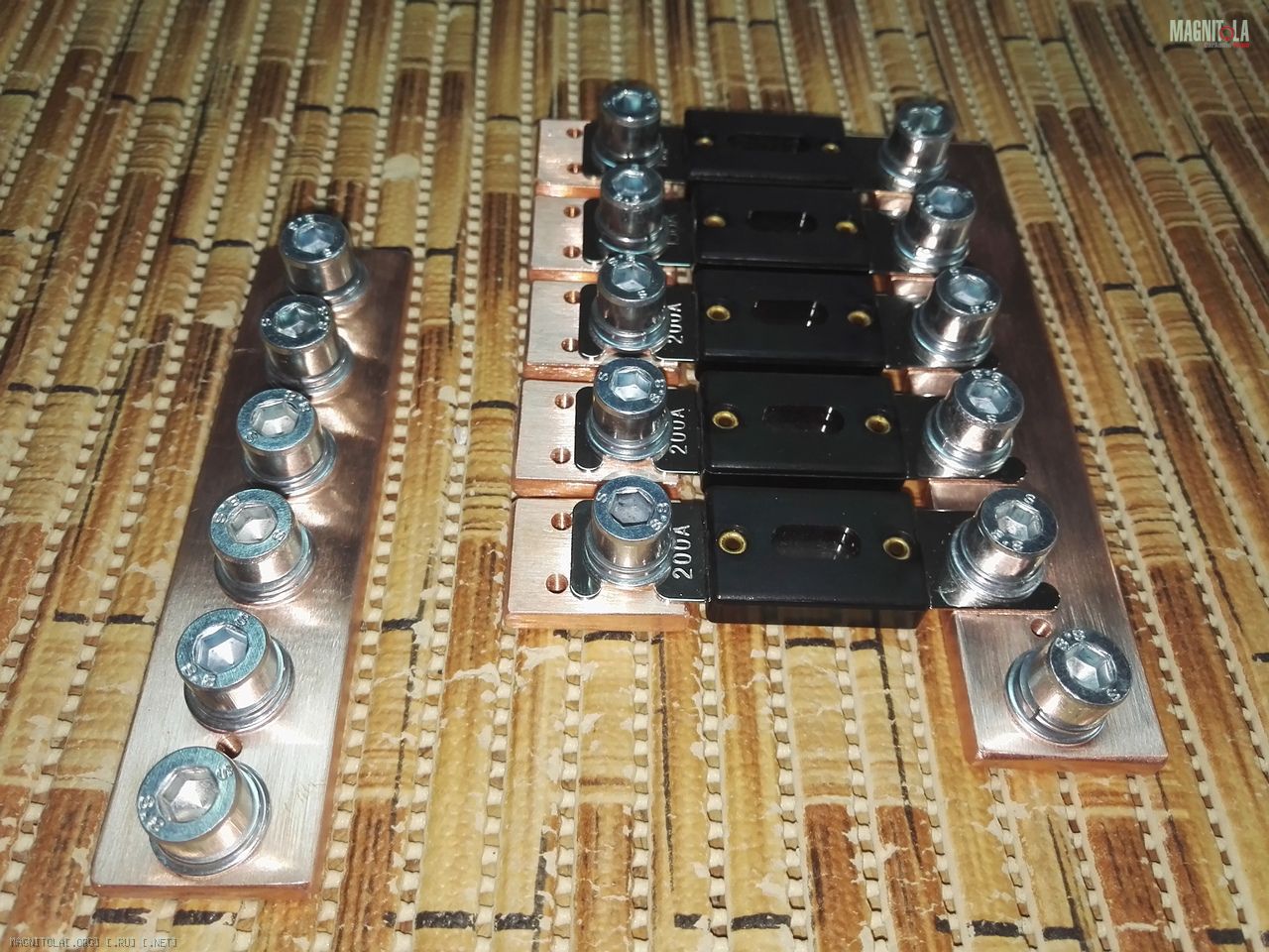 Очень редкое «изделие»https://vk.com/emoji/e/e29aa1.png медный комплект распределителей + и - на 5https://vk.com/emoji/e/f09f94a5.pngвыходов. Как всегда шина 6х30 с номинальным током 650А и надежное крепление болтами М8 на каждом терминале! Надежность https://vk.com/emoji/e/f09f92af.png%!