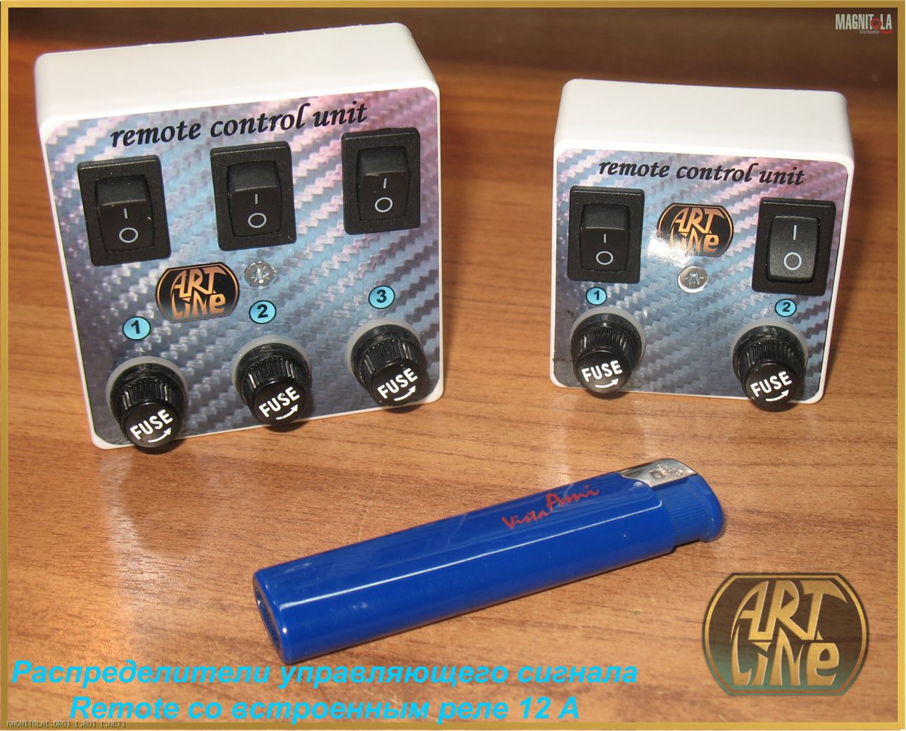 Используются для удобного управления сигналом remote включения нескольких усилителей. Каждая цепь Remote имеет отдельный выключатель и свою токовую защиту предохранителем 1А, а также - силовое реле (варианты со встроенным реле 10А) - что делает цепи ремоут не только удобными но и безопасными в вашей системе. Также возможно оснащение вольтметром с управлением - вольтметр включаеться при включении магнитолы и показывает напряжение борт сети.