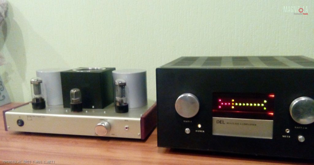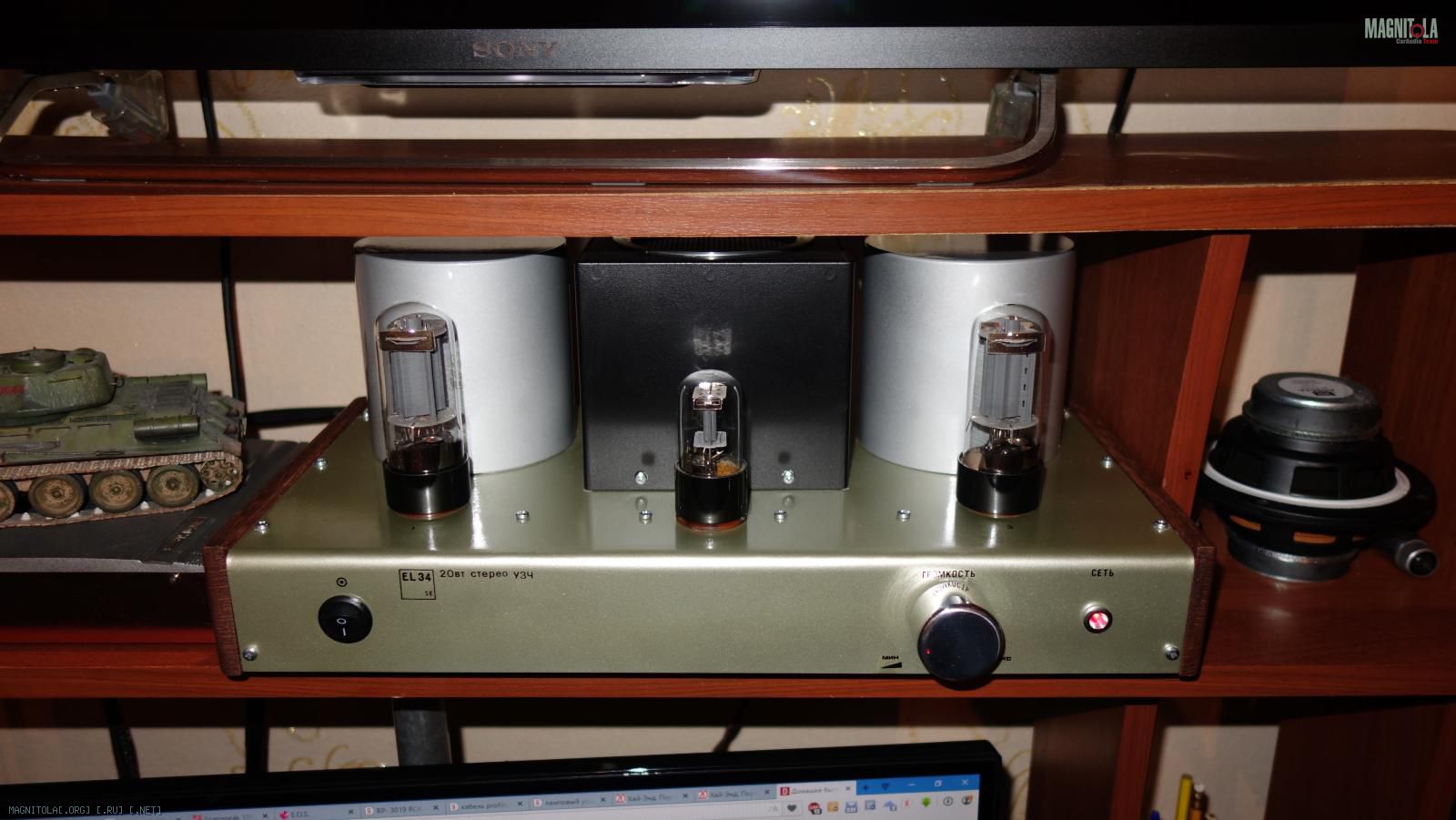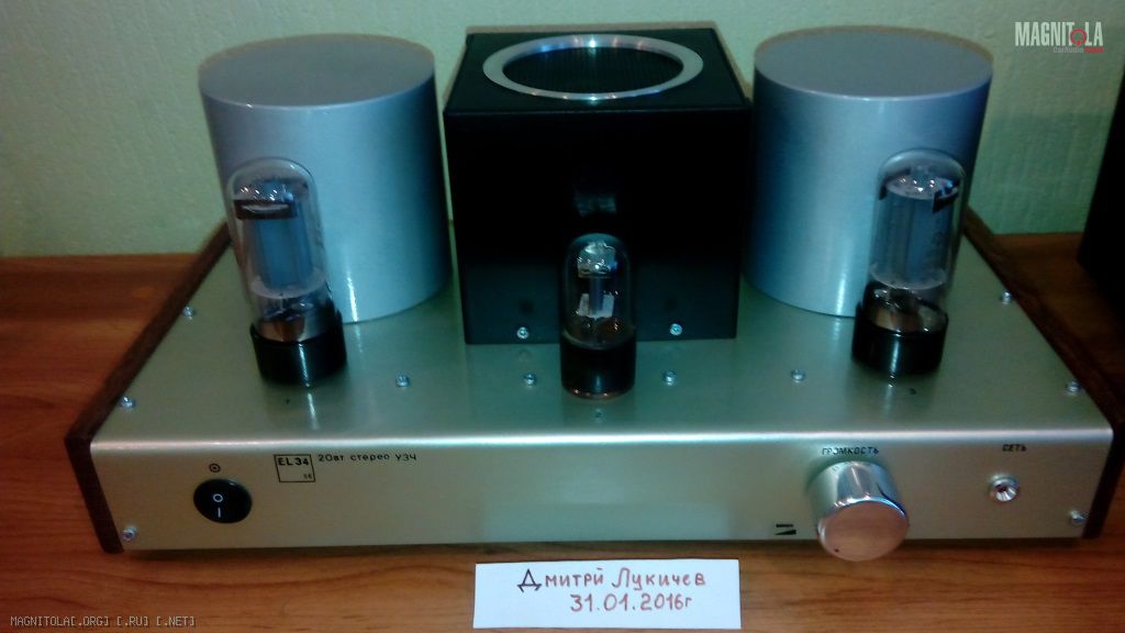 Дорогие друзья,вот наконец из шумного цеха,пыша жаром раскаленных ламп объявился младший братец "нано"! Усилитель однотактный,в тетродном включении,габаритом в несколько раз больше-420*260*180 мм. Вес 13 кг. Частотный диапазон по уровню 0 дб- 5....40000гц. Выходная мощность 8 ватт. Входная лампа 6н9с,оконечные в стоке 6п3с,возможна замена на EL-34,6L6,6L6G . Звучание очень динамичное,отличная макро и микро динамика,нет ограничений по вч и нч, суммарная емкость конденсаторов в фильтре 2000мкф,все электролиты "nichicon",проходные конденсаторы "бумага в масле". Чувствительность 350 мВ. Трансформаторы в стальных экранах,боковые "щечки"-дуб. Цена 19900р.Вложение 939648Вложение 939650Вложение 939652Вложение 939654