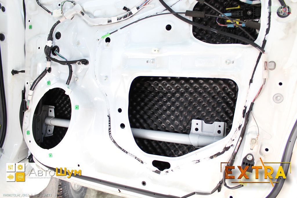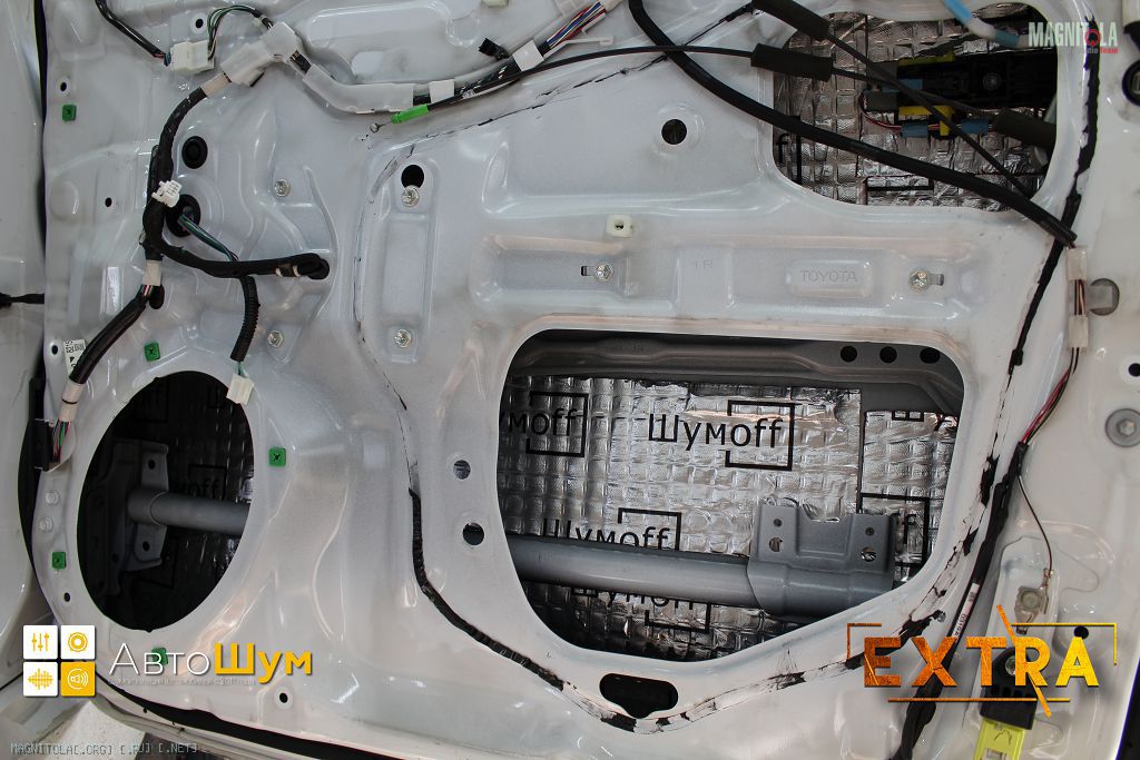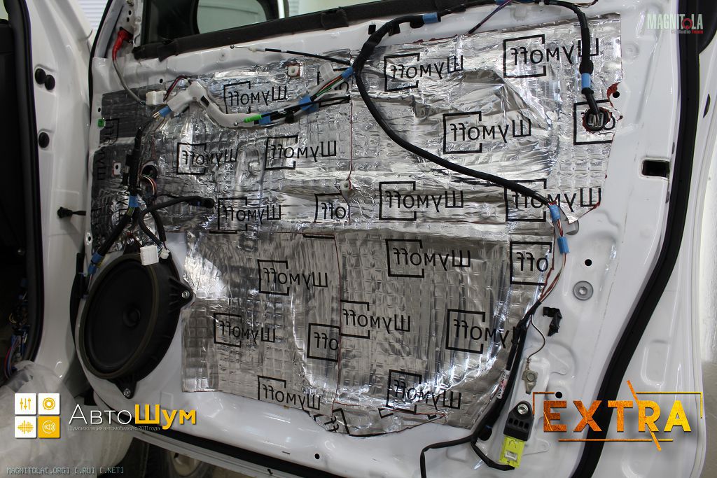 На внешний металл двери - Шумофф L2 (легкий и эффективный), П4В поверх него (В - влагоустойчивый клеевой слой). Технологич. отверстия Шумофф BASS, поверх него слой Шумофф L2 (чтобы убрать вибрации BASS'а), потом П4В (или П8В). На карты - Шумофф L2 (для вибропоглощения) + Practik Flex A15. На тяги - Шумофф Specific в деталях.
