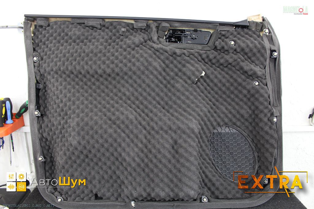 2) избавиться от "паразитных" волн диффузора динамика. Простым языком, когда динамик играет, он двигается, воздушный поток отражаясь от внешнего металла двери (или от фольги вибры) влияет на него, отчего амплитуда хода динамика искажается, что приводит к искажению звуковых волн от динамика. Поэтому поверх вибры можно смонтировать, например, Шумофф Комфорт 6 и Герметон А15Л.