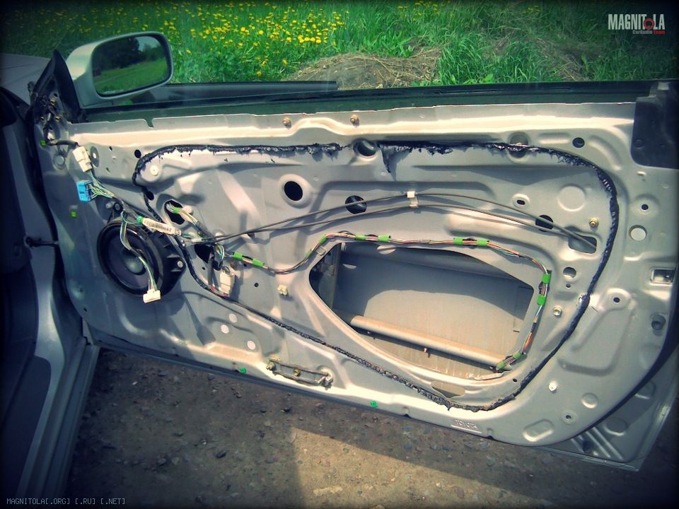 Самое слабое место двери, как показалось, это права от динамика, где большой разъем. Это место усилено дополнительными слоями.