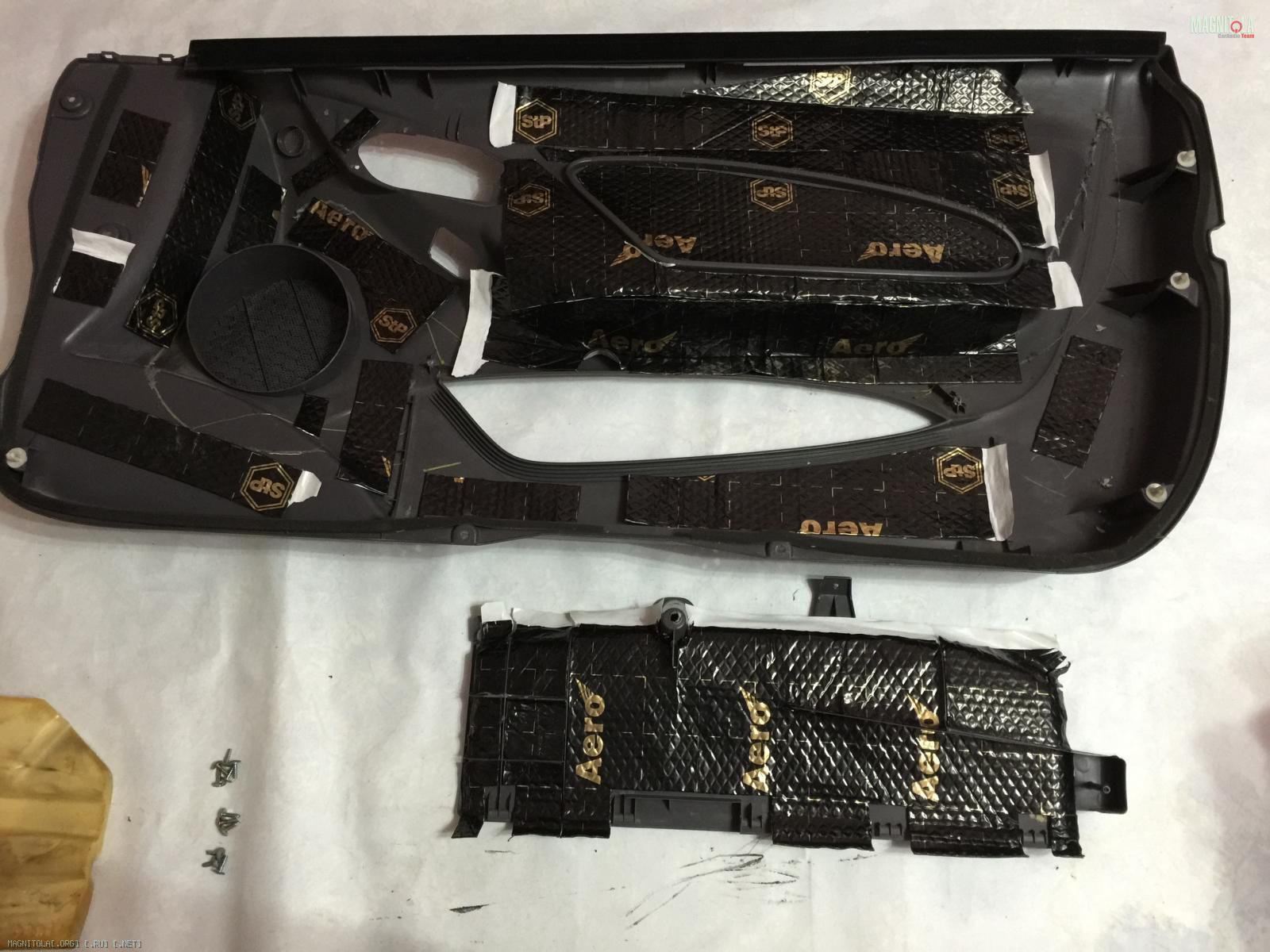 Внезапно захотелось зашумить карту двери, из материалов под рукой оказался лист STP Aero 2мм и Битопласт.