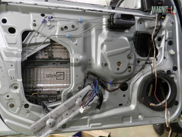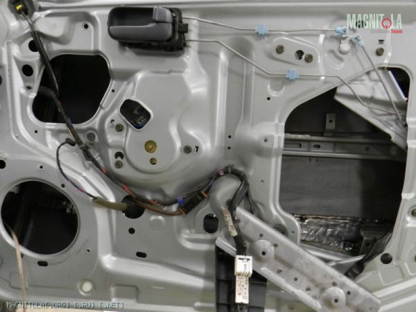Люминь подогнуть где нужно, чтоб прошли тяги и провода. Образовавшиеся отверстия после установки заглушки заклеить виброй.