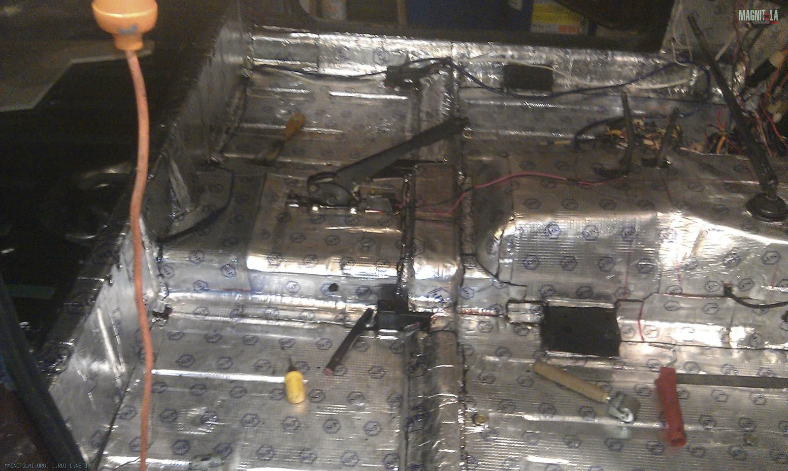 -бензобак сверху обклеен СТП Сильвер2мм, накрыт железным листом который сверху обклеен спленом 6мм на битуме