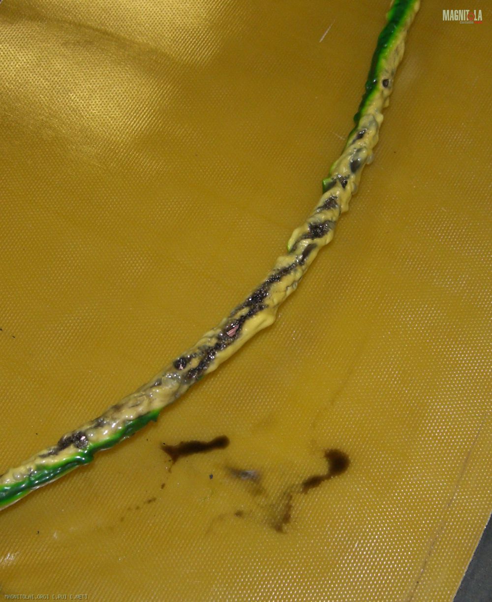 Подопытный провод ПВ-3 16 мм2, пытка током 1000 А.
