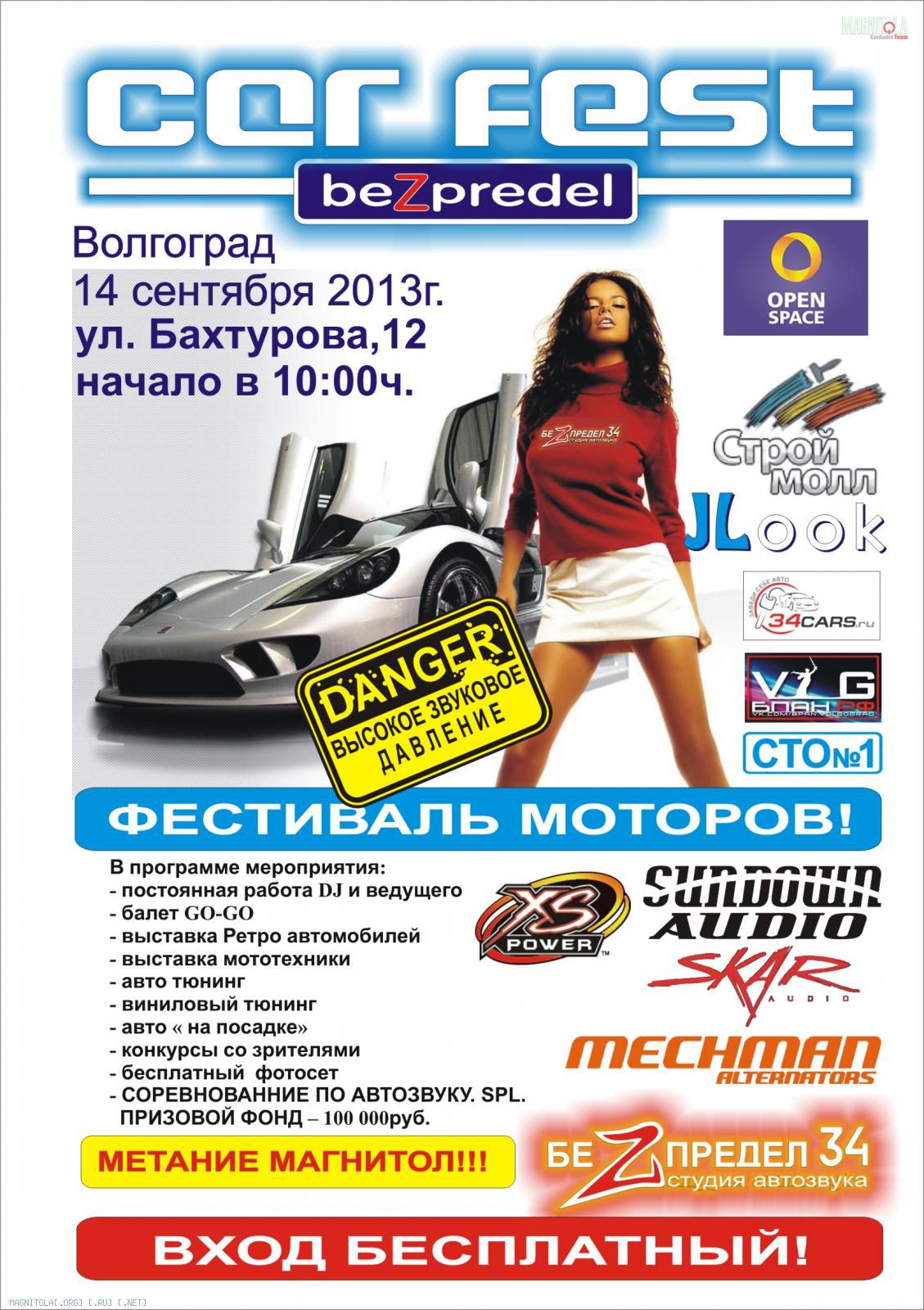 14 сентября 2013 г. В Красноармейском районе, на территории ТК «Строймолл» пройдет развлекательно-познавательное мероприятие «beZpredel Car Fest 2013»!