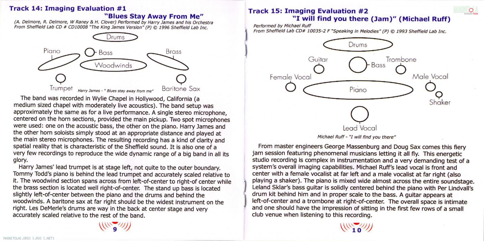 Детальные звуковые карты есть на вкладке компакт диска RASCA и отражают точноерасположение и размеры определенных инструментов и вокала для сравнения во времясудейства. Эти карты были составлены вместе с инженерами, которые записали треки.