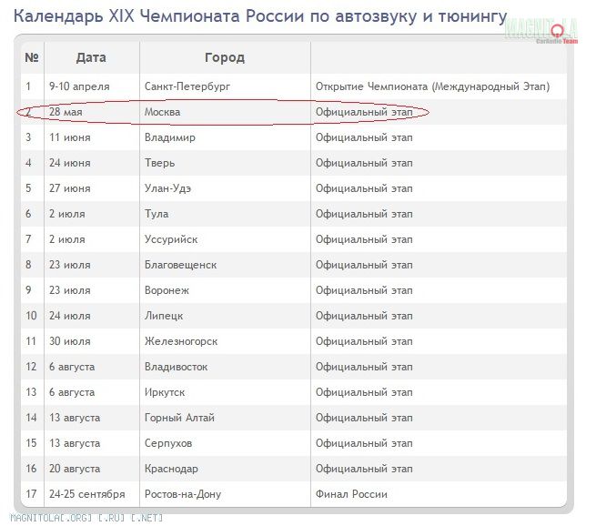 Re: Календарь XIX Чемпионата России по автозвуку и тюнингу