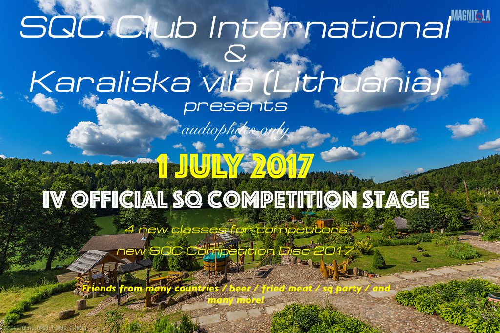 Приглашаем всех любителей автозвука на IV Международный этап SQC Club сезона 2017, который состоится 1 июля 2017 года в пригороде Вильнюса (Литва). Открыты 4 класса для участников