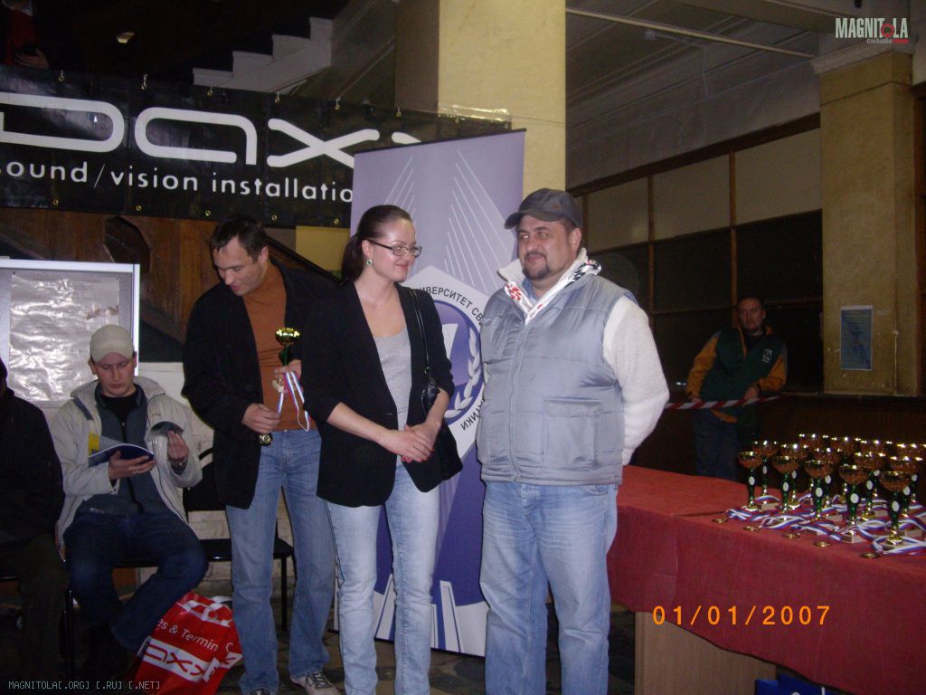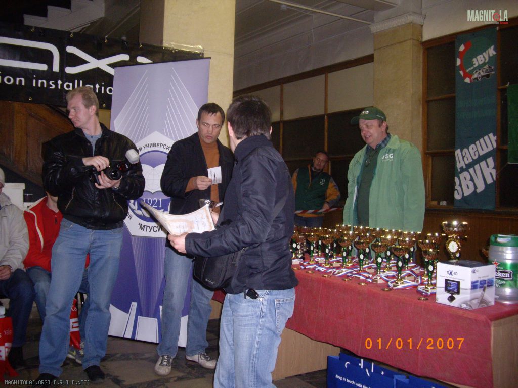 Погода конечно не айс . Ну и процедура награждения судей медными аккустическими проводами напрягает. В цело ЛАС как ЛАС, меряли всех одним датчиком, условия равные. Единственное с Гольфом косяк, первый раз он не сработал, а на втором замере было слышно, как угасают АКБ. Ибо два 20 секундных замера на заглушенном моторе тяжеловато даже для грядки АКБ