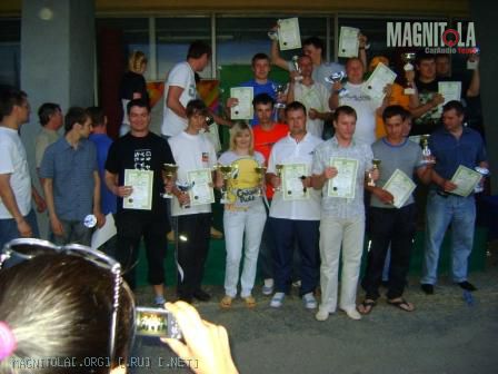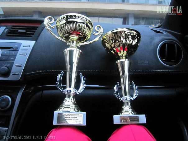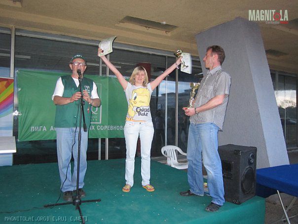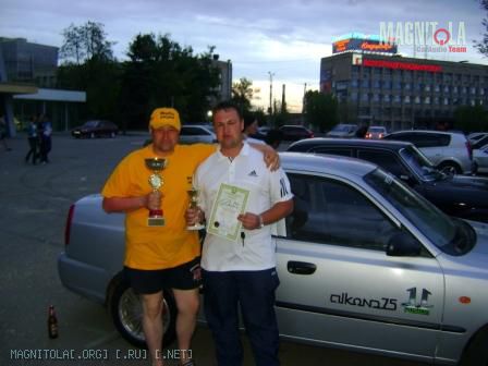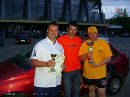 Когда объявляли итоги назвали НАШУ фамилию Кондратов .... и заминка с именем... Лёха толкает меня и хватает фотик, мы были на 200% уверены, что у меня система лучше.... но ... пауза и... Алексей!!!!! Мы в шоке, я хватаю фотик и уже Лёха спешит на подиум! Сегодня узнал, что я только шестой, но это ничего, для первого раза нормальный результат, а по совокупности МЫ впервые (до этого даже зрителями ни разу не бывали на автосвуковых соревнованиях и не слышавшие чемпионских машин вживую) приехав и приняв участие заняли 2-е и 6-е места среди довольно неплохих (а с нашего уровня - просто отличных) машин.