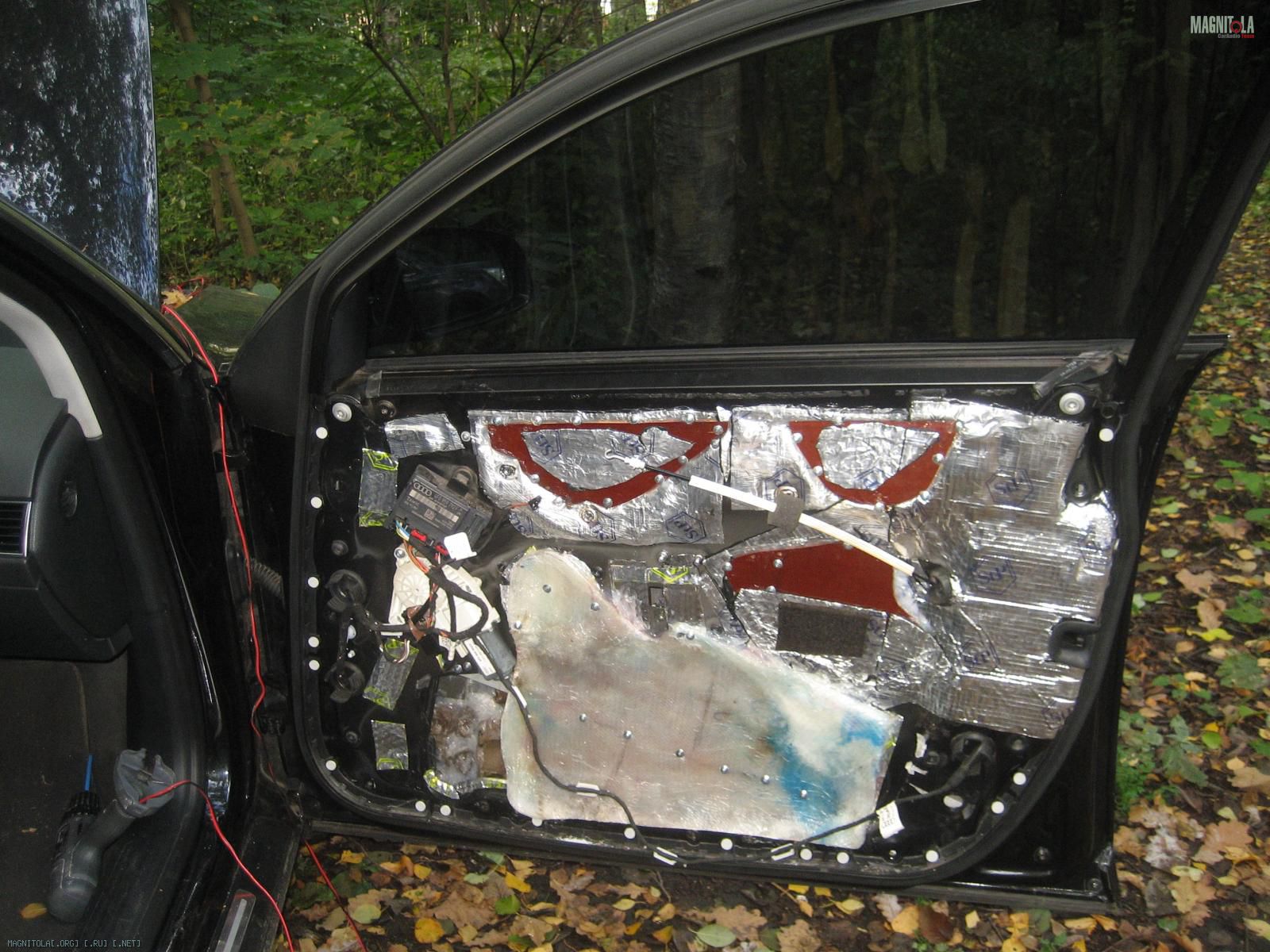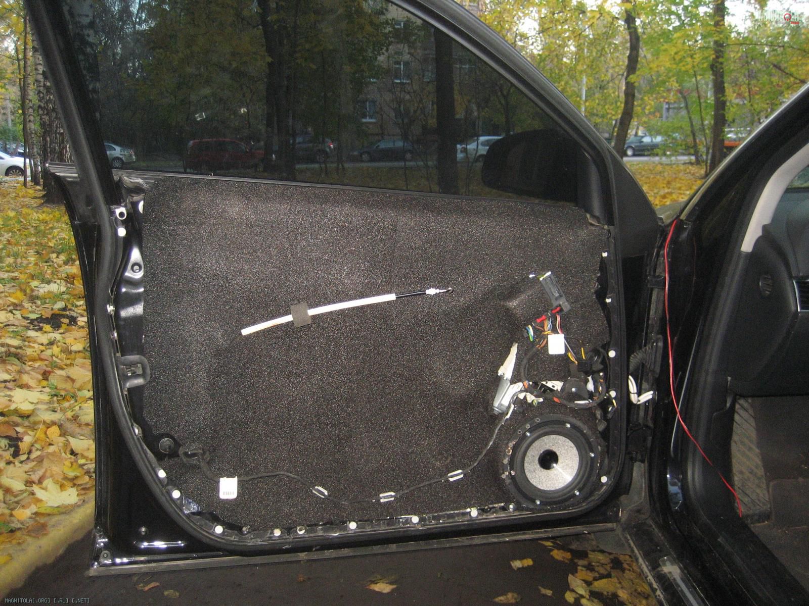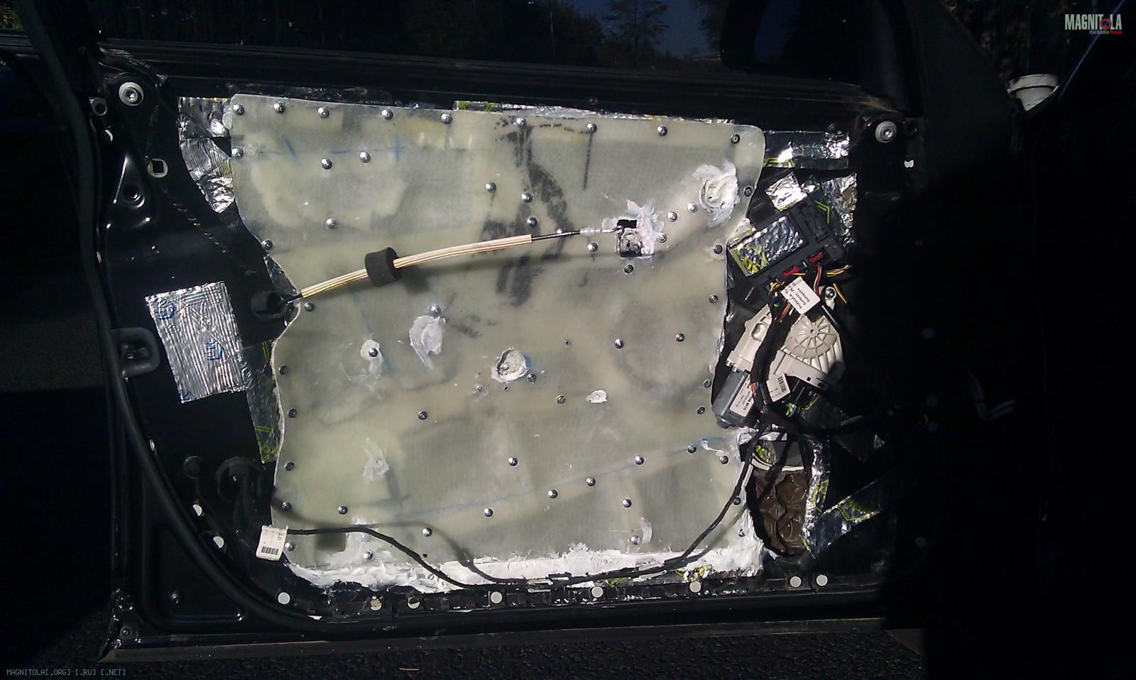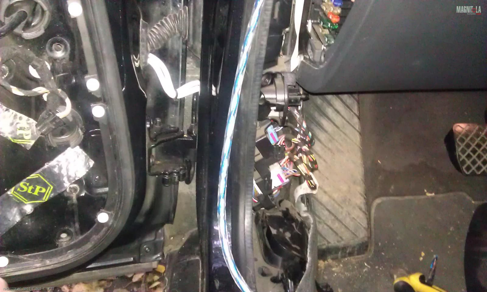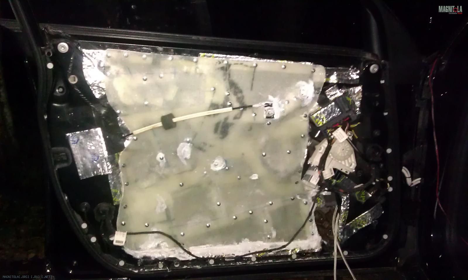 Завел в двери акустические провода на мидбасы. Вид из зоны кик-панелей.