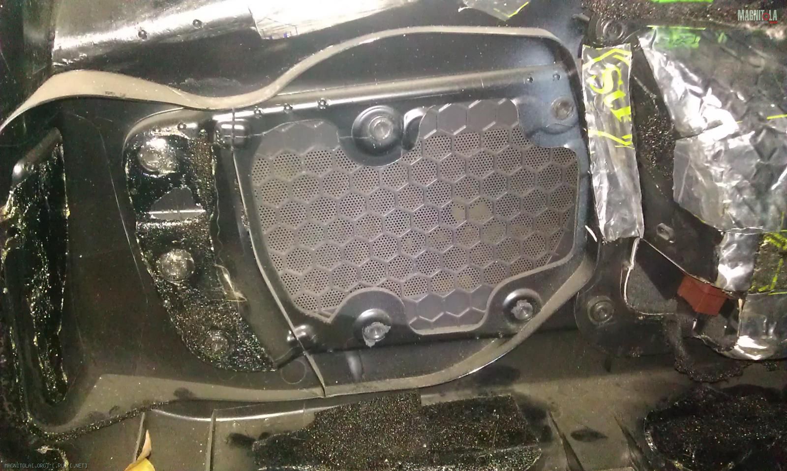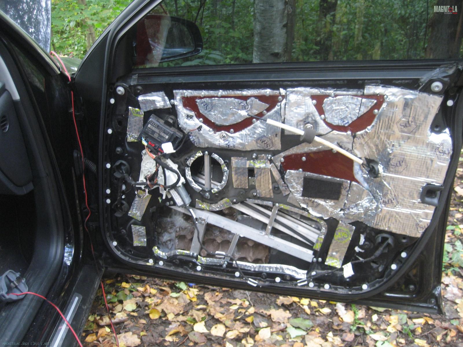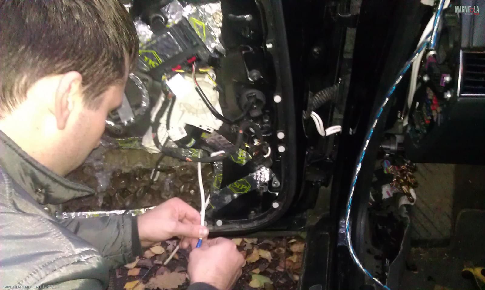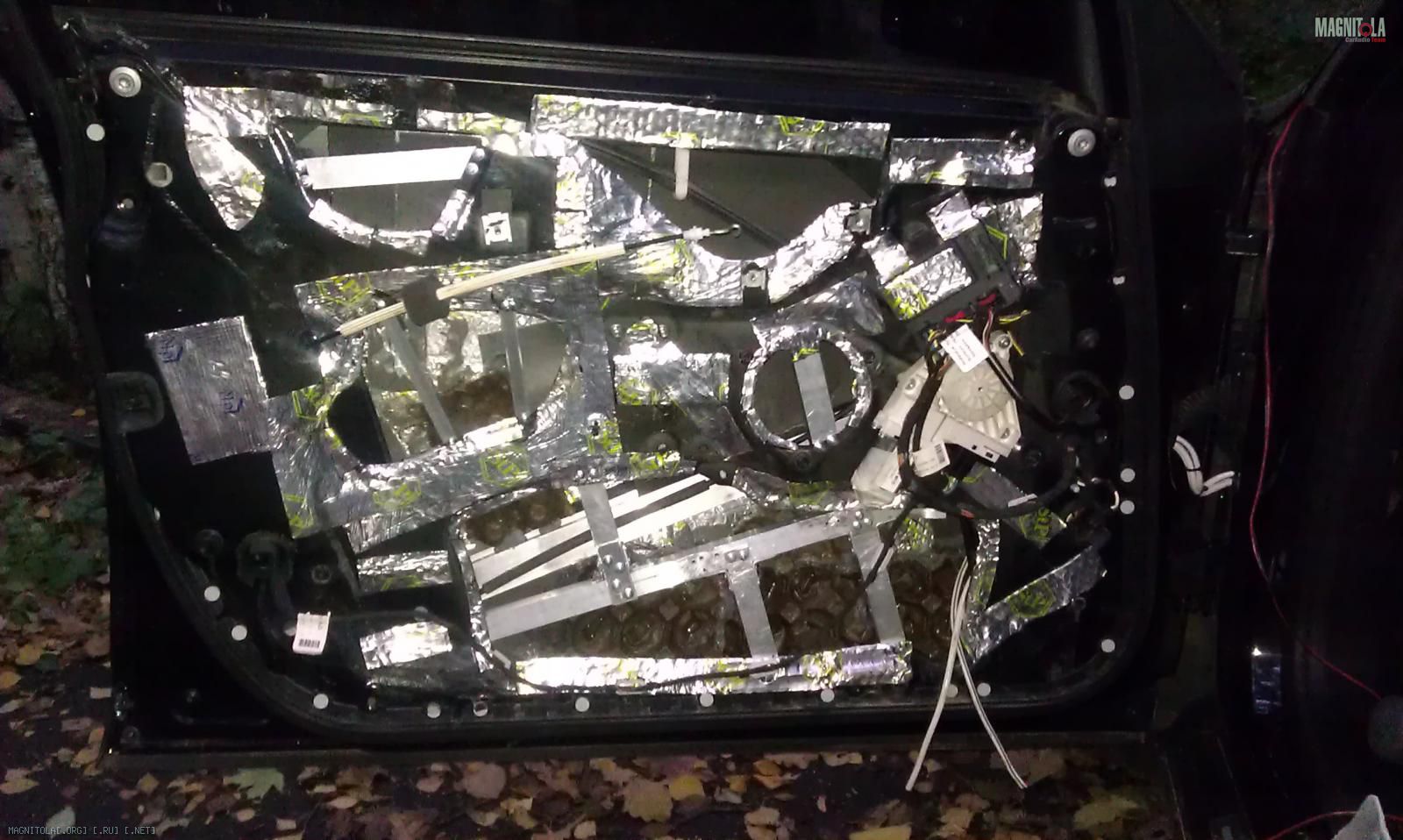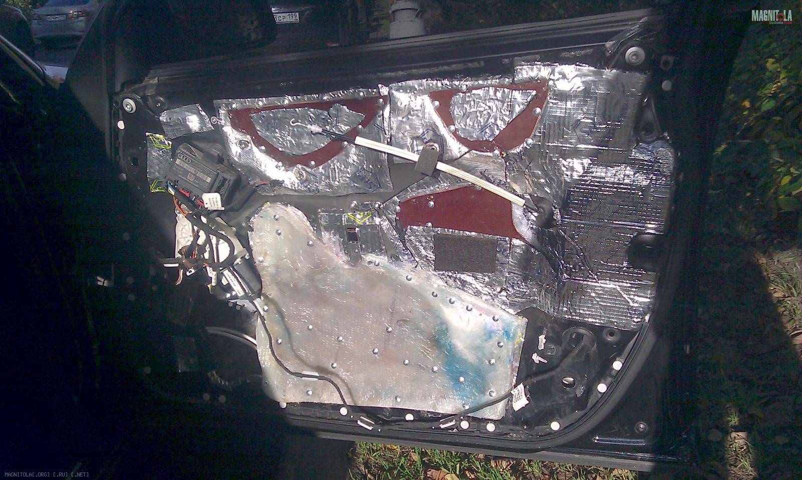 Завел в двери акустические провода на мидбасы. Вид из зоны кик-панелей.