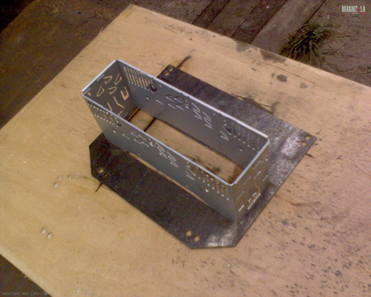 Сперва была замерена штатная магнитола и изготовлена металлическая пластина, с такими-же креплениями, к ней сварочкой прихватили салазки от ГУ