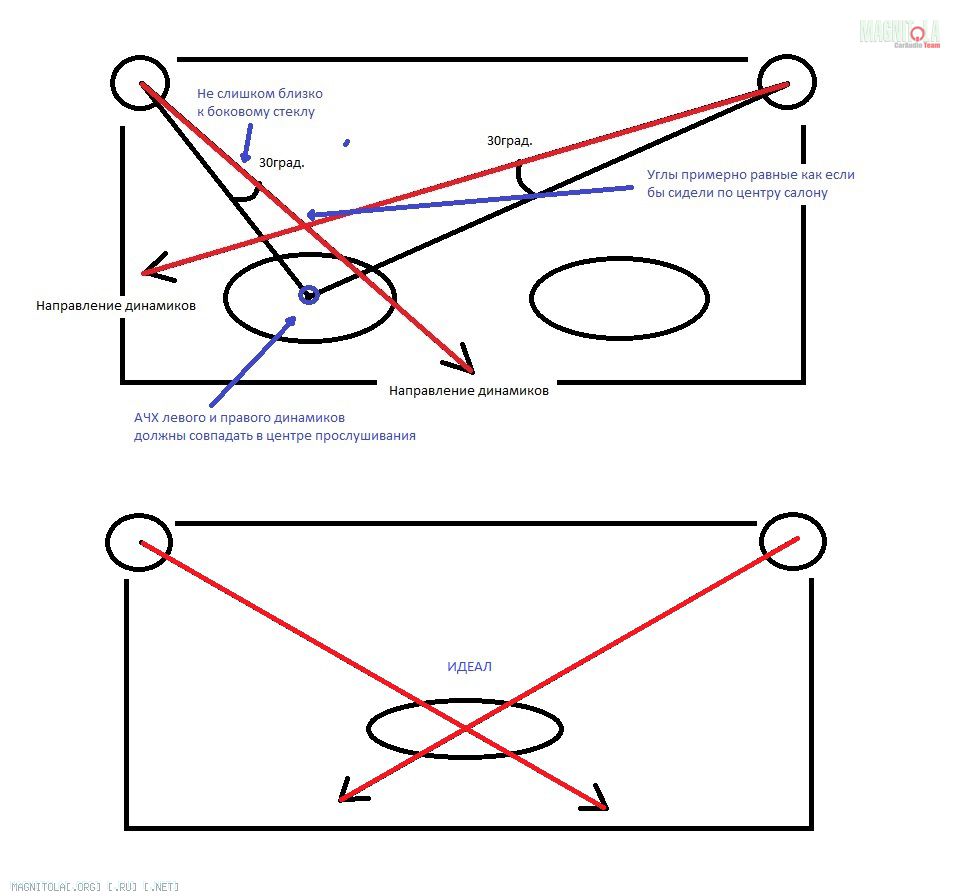 1. В уголки зеркал с направлением на дальнего слушателя, твиттеры тоже направлены на дальнего - сцена хорошая, полностью симметричная. Вообщем понравилось как играет.