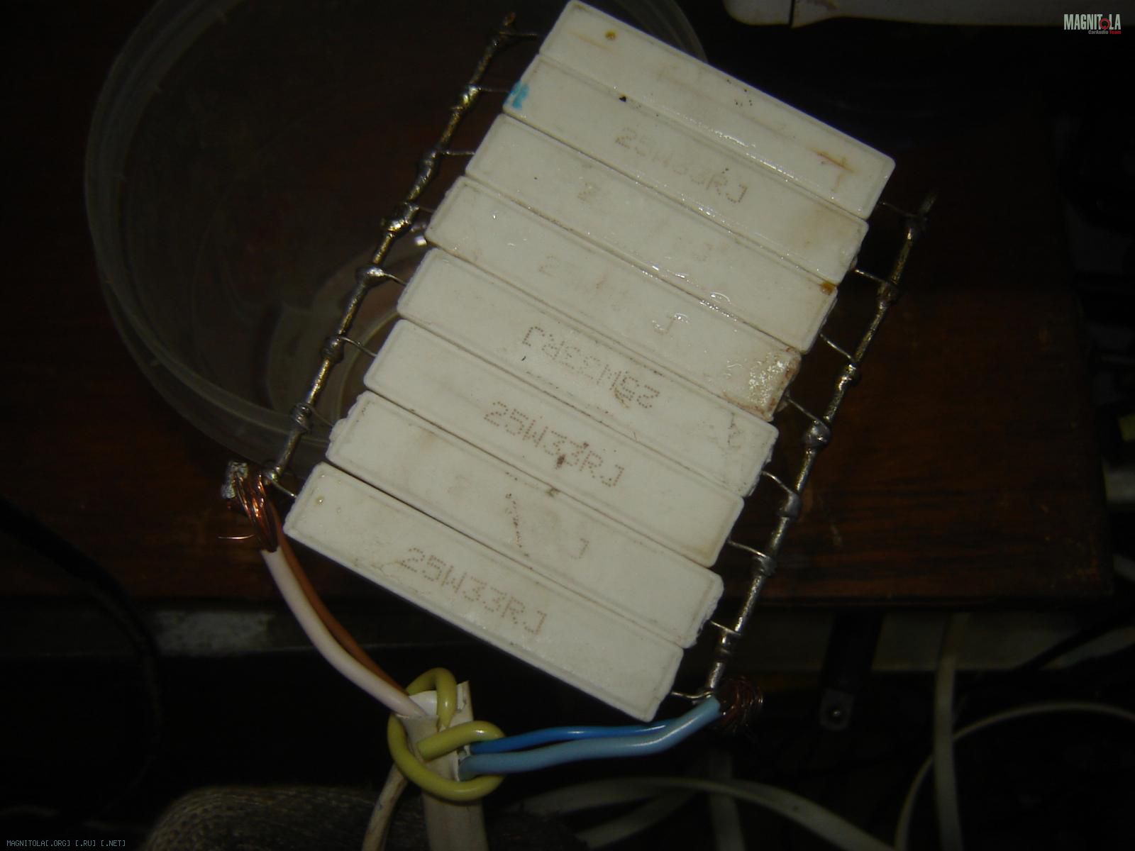 В моем случае это 8 штук 33 Омных резистора (рассеивающей мощностью 25 Ватт), подключенных параллельно.