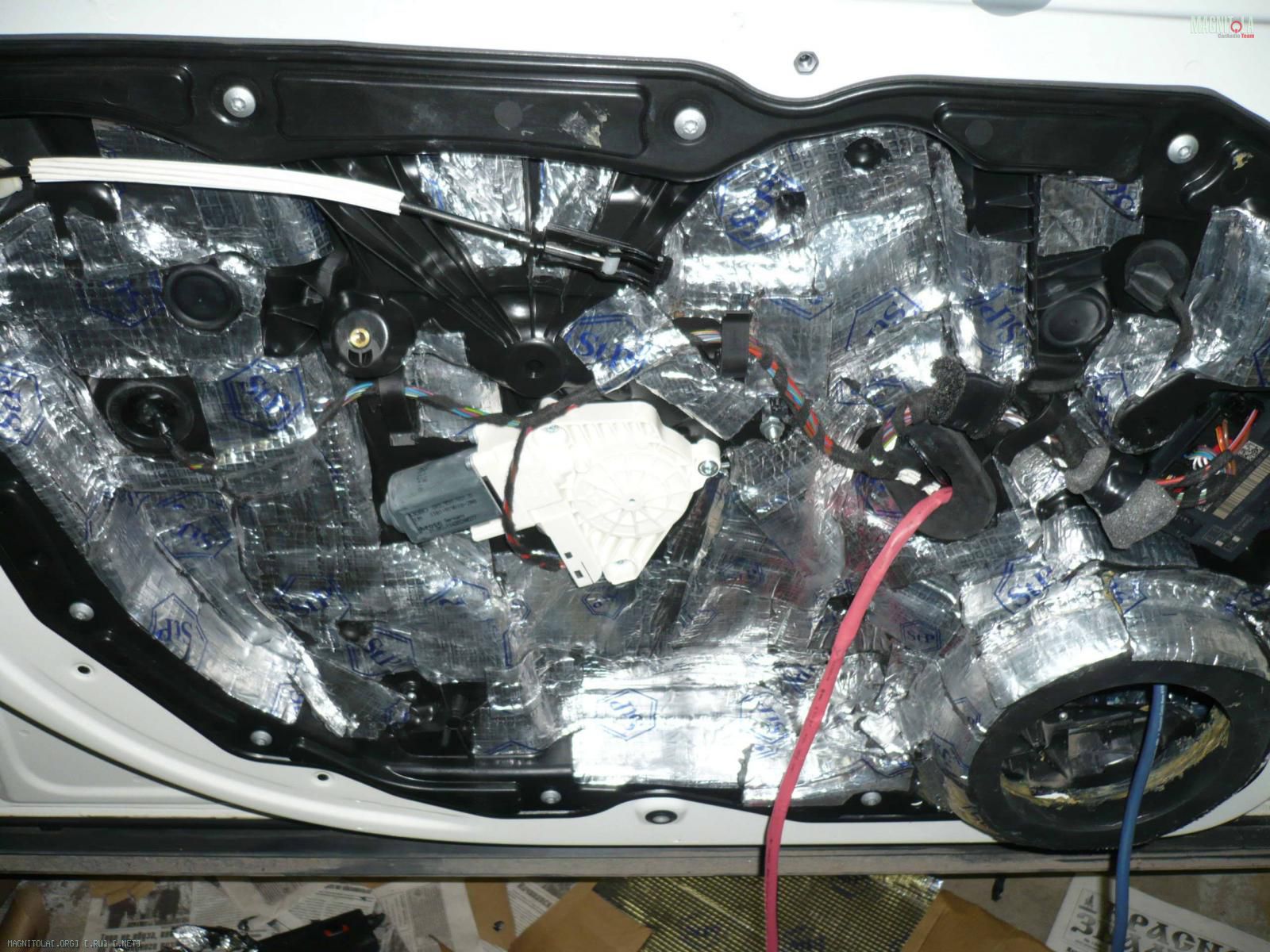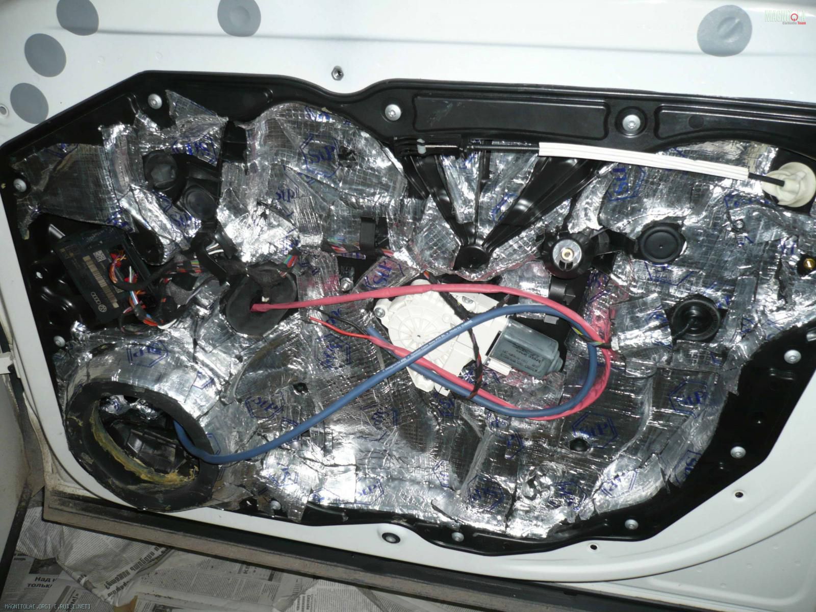 Карту двери я проклеил не много виброй, чтобы пластик был поглуше и на термоклей преклеил штатный синтипон!
