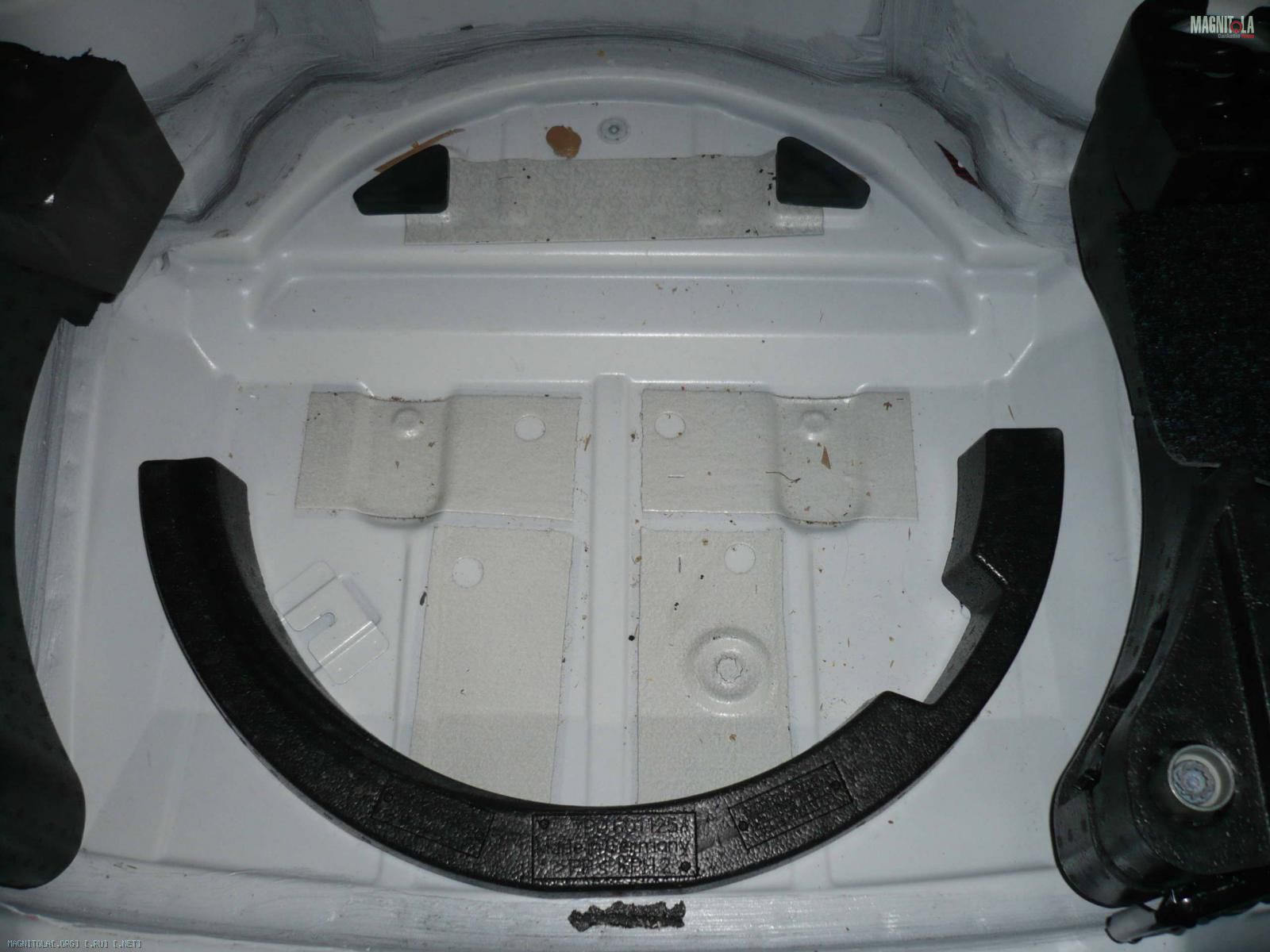 Колесо естественно преподнял на максимум возможного, всего лишь на 2 см!) Ибо она начинает упираться в штатную фальш/крышку! В этой крышке не хотелось бы в штатной обивке резать под колесо изнутри, да и не много там выиграешь, может ещё см!