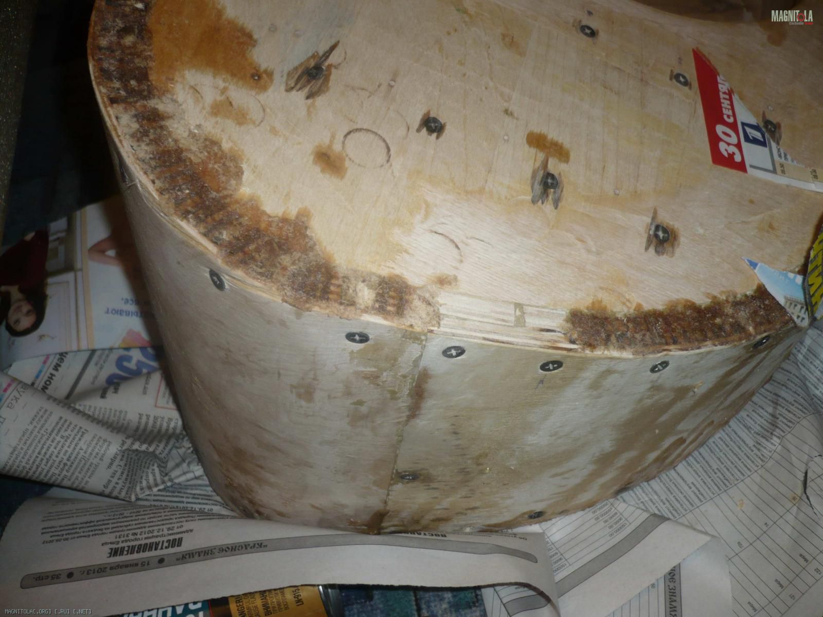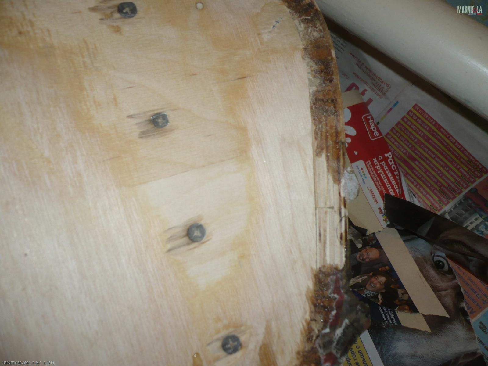 Вот эта "гниль" на фанере, это результат воздействия влаги и металла, когда я на ночь под весом гнуться оставлял стенки, я утежеля всем, что было под руками, в том числе и старыми тяжёлыми напильниками, что фанера так не заплеснело не делайте так!) А так впринципе пофиг.)
