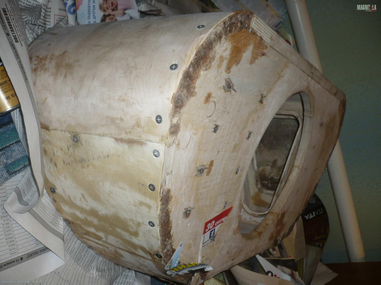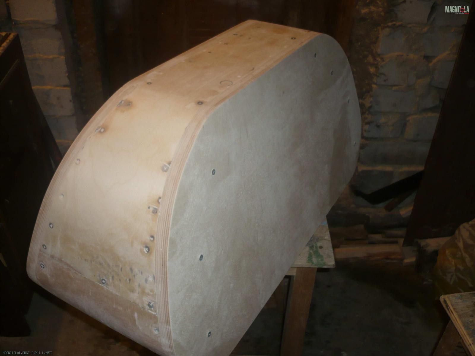 Либо буду всё-таки натягивать тряпку и накладывать стекловолокно тем самым сделаю его округлым, а внутренности заполню через просверлённые дырочки монтажной пеной!)