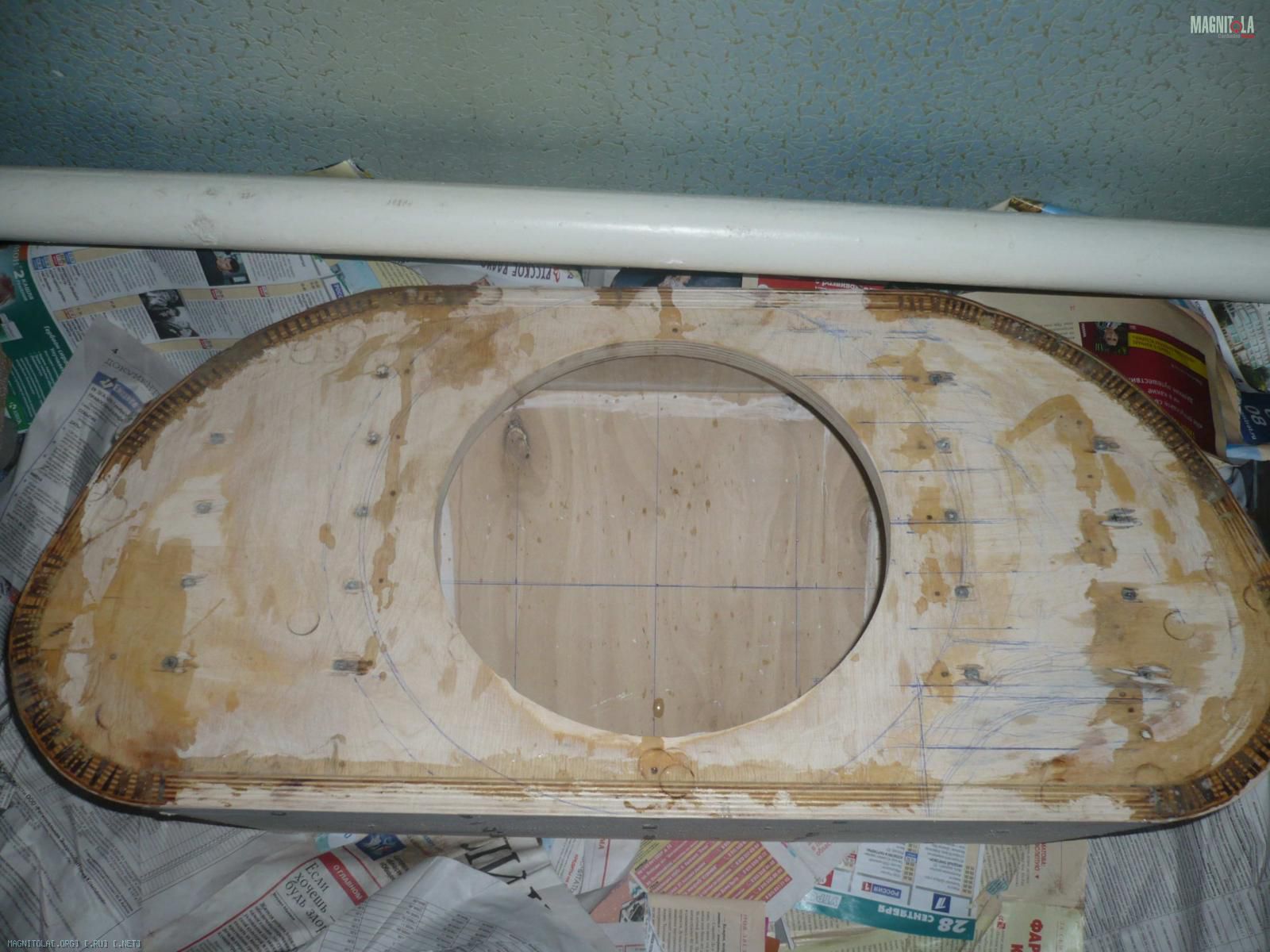 Т.е. задняя получилась 2х18 мм = 36 мм, фронтальная будет ступеньками на уменьшение по 3 см от края, дабы передняя стенка была очень прочной и жёсткой, вначале хотел просто напилить колечек и по диаганали распилить лобзиком, да дошёркать, но вот вес колечка меня смущал, я понимал что это уже не будет выглядеть как хлюпенькая прокладка для саба, но тем не менее решил пойти по более сложному пути, делать стенку пирогом и попробую её "пилой Дружбы" распилить по диагонали, мне нужен доворот.