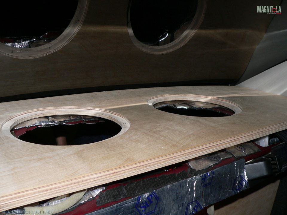 Отверстия в задней полки для того, чтобы басу легче было проникать в салон.