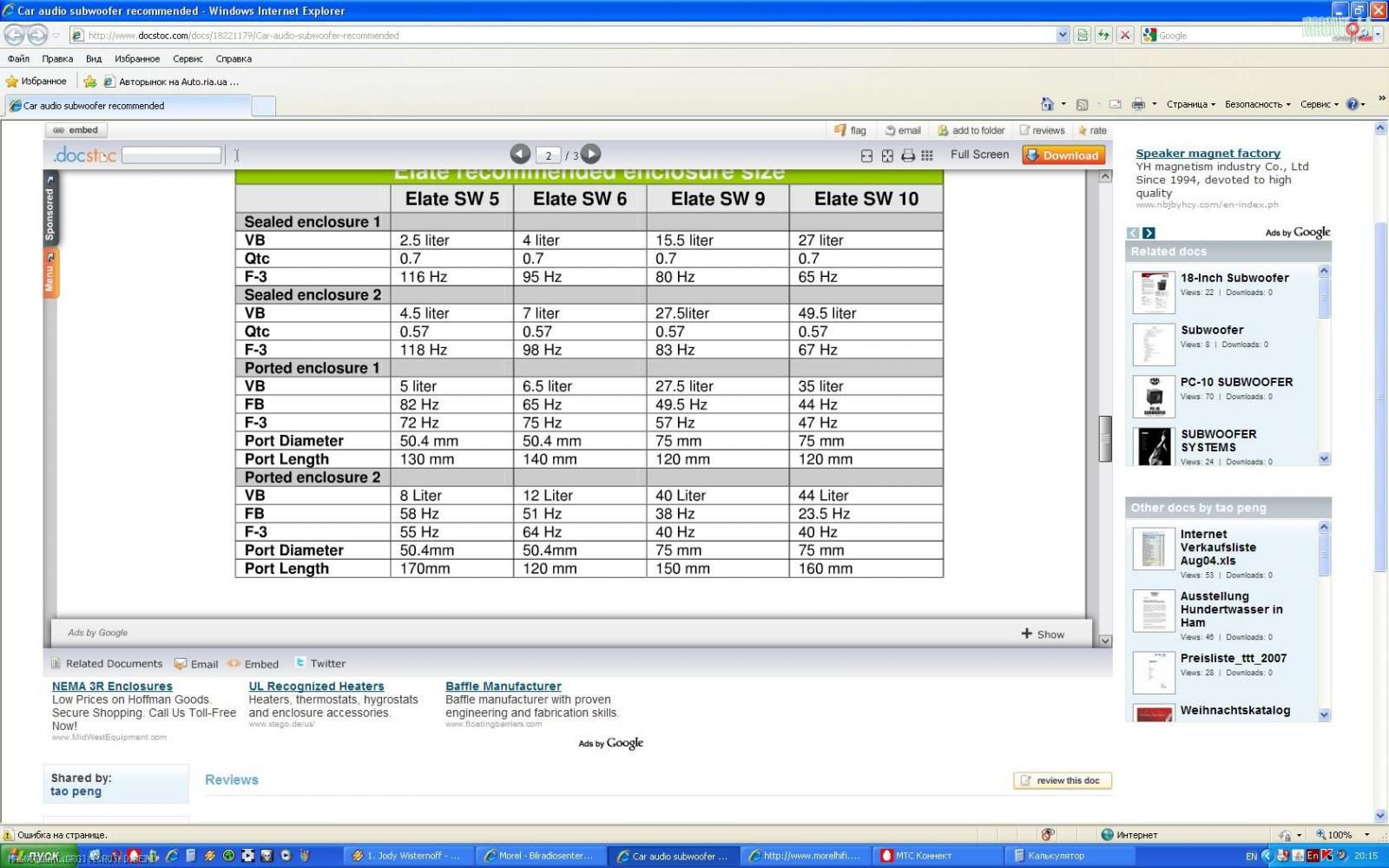 По сабу ... по сабу все сложнее :) не знаю нужен фазик или нет. Но без я уже послушал, теперь хочу с :)(хотя знаю что ЗЯ более аудиофильский считается :)) и опять же нашел тут на форуме следующее сообщение с таблицей