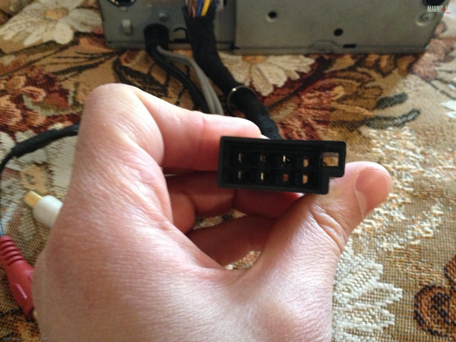 На рис1. разьём, который подходит к моему рзьёму в машине(я подключаю к нему питание есть),но также у меня в машине есть синенький провод,который как я понимаю даёт сигнал на усилитель, но куда его подключать я понятия не имею,так вот кто понимает помогите.