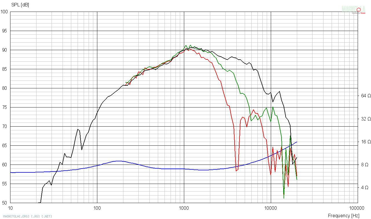 А горба то и нет на 1кГц. Значит можно делать вывод, что этот конкретно купольник не требует объема в том смысле что он готов играть во free air а не без объема. Добротность высока изначально.