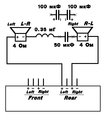Тут вот случайно наткнулся на прикольную схему включения тыловых динамиков - выделение разностного сигнала из двух стереоканалов (схема Хаффлера):