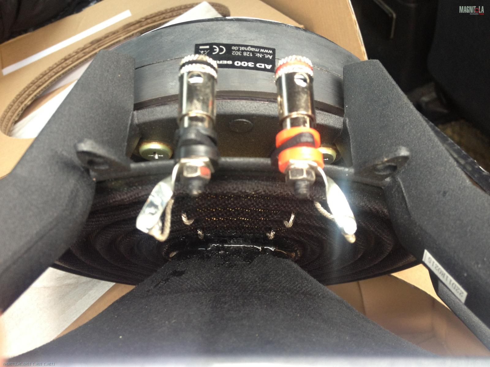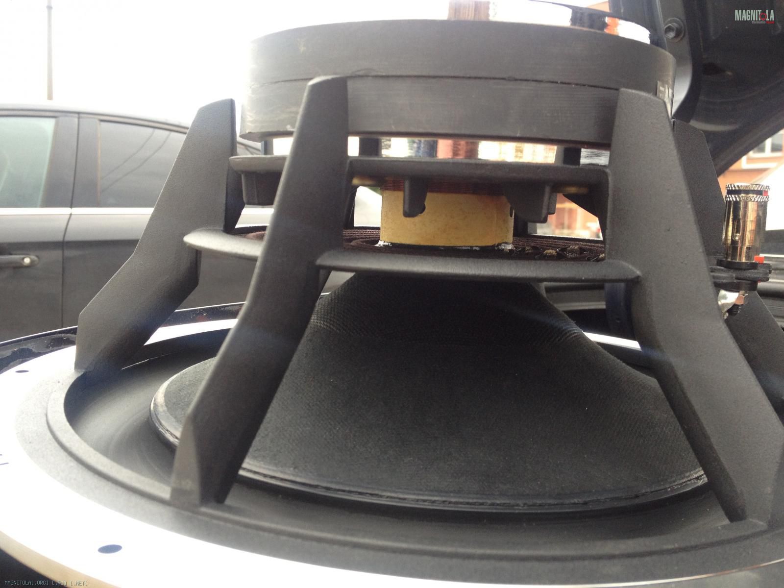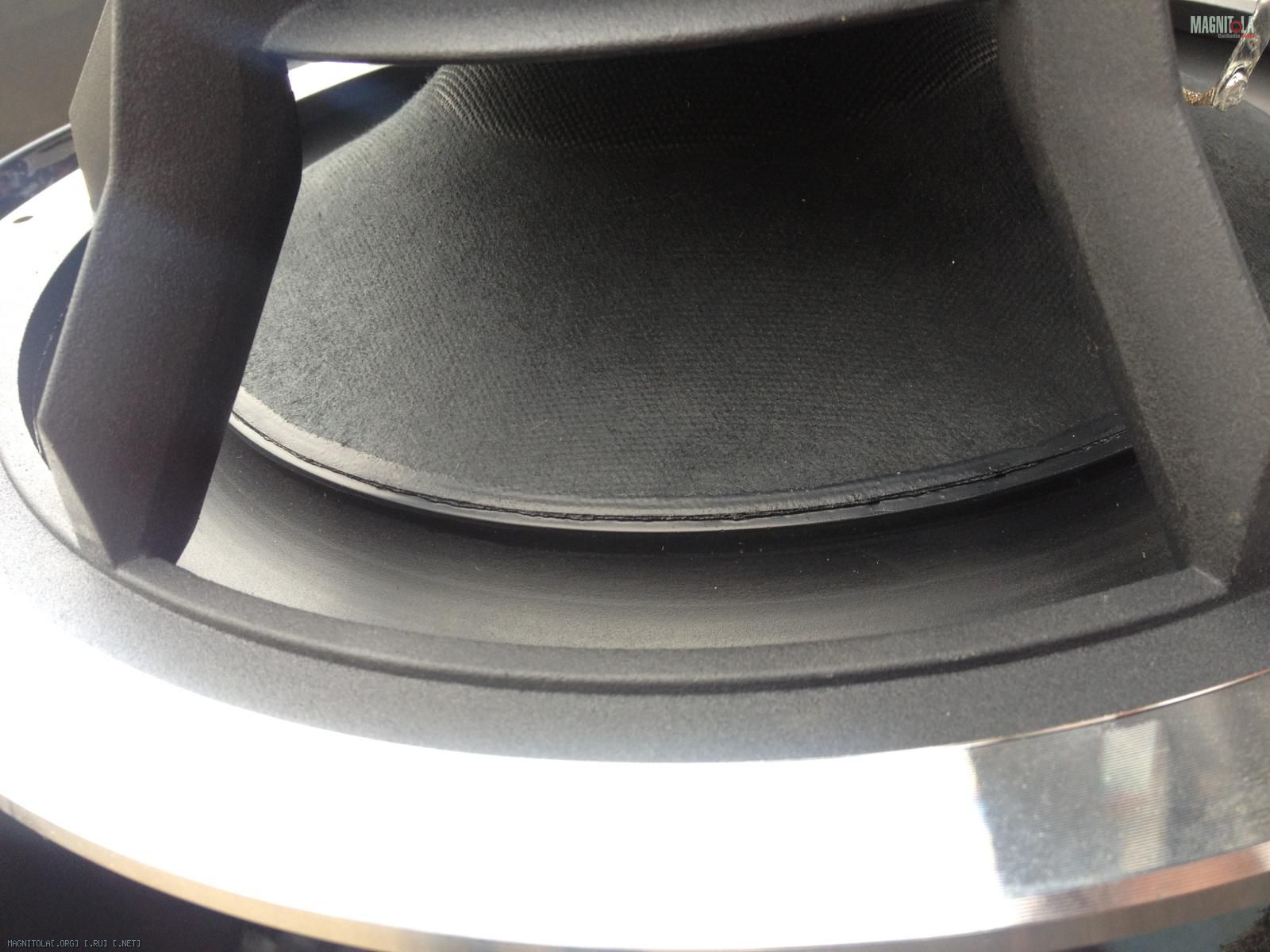 Динамик собран очень качественно! Великолепная, гладка фрезеровка, литье! Подвижка в целом, если шевелить руками внушительно жесткая, новьё как-никак! Подвес из толстой, но мягкой резины, очень хорошо всё проклеено! Диффузор из прессованной целлюлозы, не очень толстый, морщинестой стороной наружу! То как реализована ЦШ, да и конструкция динамика в целом, очень схожа с перлисом 830877, тоесть защиты от мусора и пыли у мотора нет, а поводки прошиты в шайбу! Двойной магнит! Установочный диаметр 295 мм, соответственно так просто он вместо хеликса не стал, да и по наружнему он значительно больше - 341мм! Пришлось вырубить пазы в отверстии ящика от хеликса, под рёбра магната на корзине! Отмечу один момент, это площадь, ну или большая ширина прилегания корзины к ящику, это безусловно плюс!