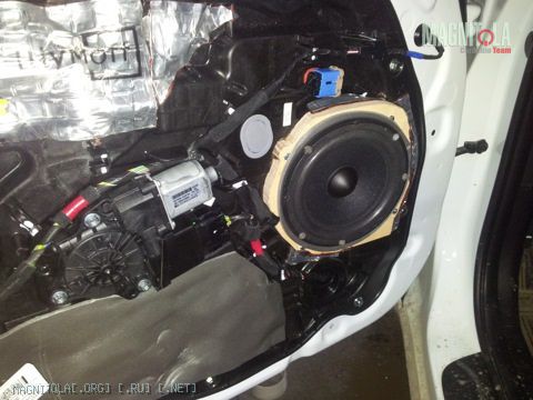 Лучше подумай, как звук из-под фигурной обивки доставать;) Хотя там тоже ничего особенного - накладной подик слепить поверх штатной сетки и все дела.