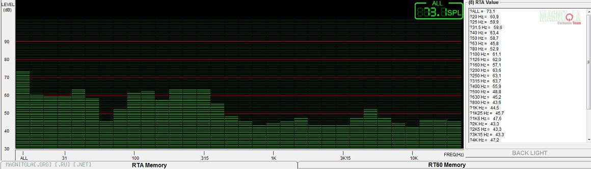 Как видно из графиков есть провал на 63 гц 80 Гц, видимо из за того что миды сейчас от 100 Гц играют. Попробую их до 80 порезать, может и поможет. Также есть на 160 Гц и на 2.5 Кгц небольшой провал. Возможно от переотраженки.