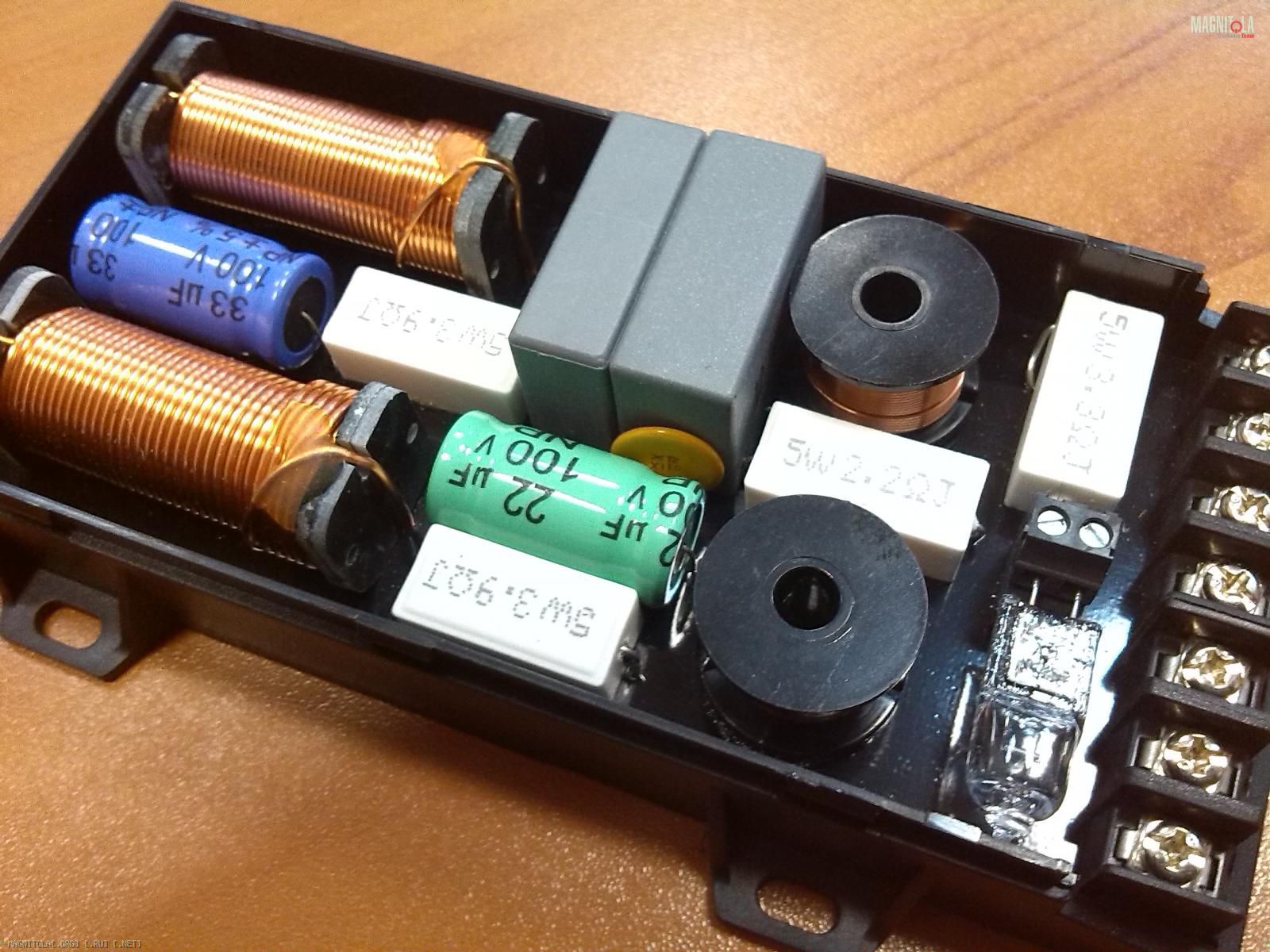Кроссы весьма посредственные, 4-м порядком (хотя не100% снизу разводку не вижу). Потроха -дешевка (экономили на чем могли) конденсаторы на мид - электролиты, катушки на металлическом сердечнике, на ВЧ конденсаторы пленочные, но катушки с очень тонкой проволокой (с высоким сопротивлением) и резисторы на 5Вт - что неминуемо убьет все эмоции и детальность на пищалке!!! Короче по возможности таким кроссом лучше не пользоваться!