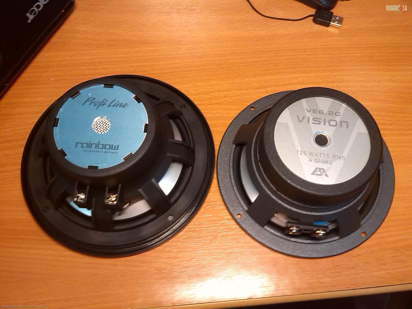 Т.к. рассматриваю комплект на замену своего ESX VE6.2C, то и сравнивать будем с ним. По мидам сравнение особенно актуально, ведь оба (надо заметить не частые) представители мидов с алюминиевым диффузором!