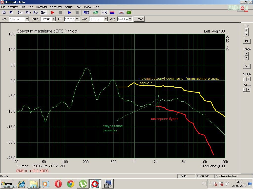 Но ! Необходим Акустический Экран.Для снятия АЧХ до 100Гц это круг радиусом 1,72 м;если нижняя частотная 200 Гц ,то радиус круга 86 см.Динамик установить в центр этого круга и на оси динамика установить имеющийся сомнительный микрофон на расстоянии 1 метр.На розовом шуме ,подрезанном ФВЧ герц на 80,снять АЧХ 3-5-7 раз и результат усреднить.