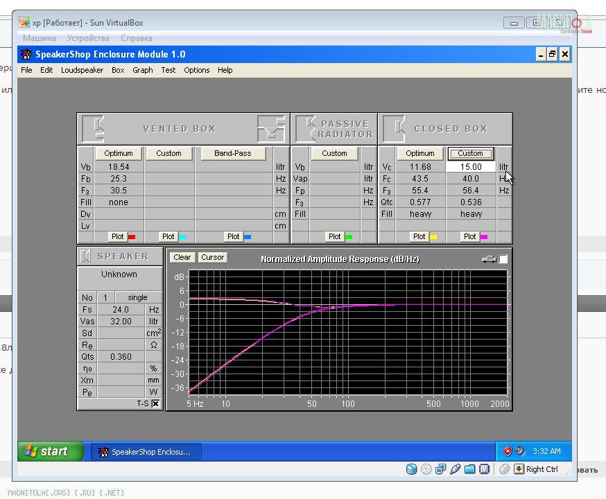 По поводу оформлений дело такое... Спикершоп имеет настройку автомобильную - вот любой саб , имеющий подъем ниже этой настройки в Спикершопе будет кривить АЧХ много меньше для любого практического применения , и это в то время , что для теории ровная AЧХ достижима при резонансной частоте на герц 20-25 выше...