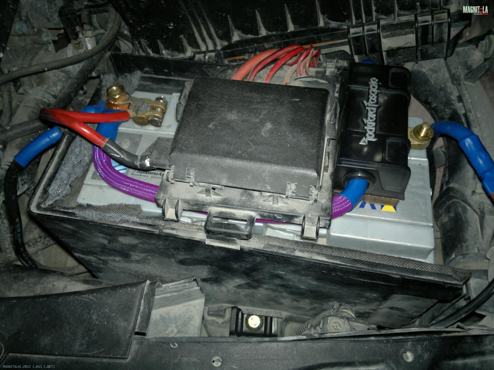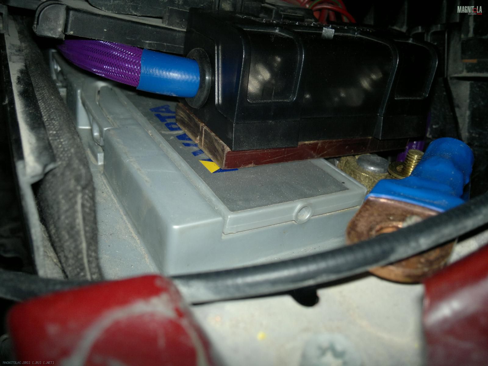 прикрепил через эбонитовую пластину к аккуму (отверстия для крышки клеммы)