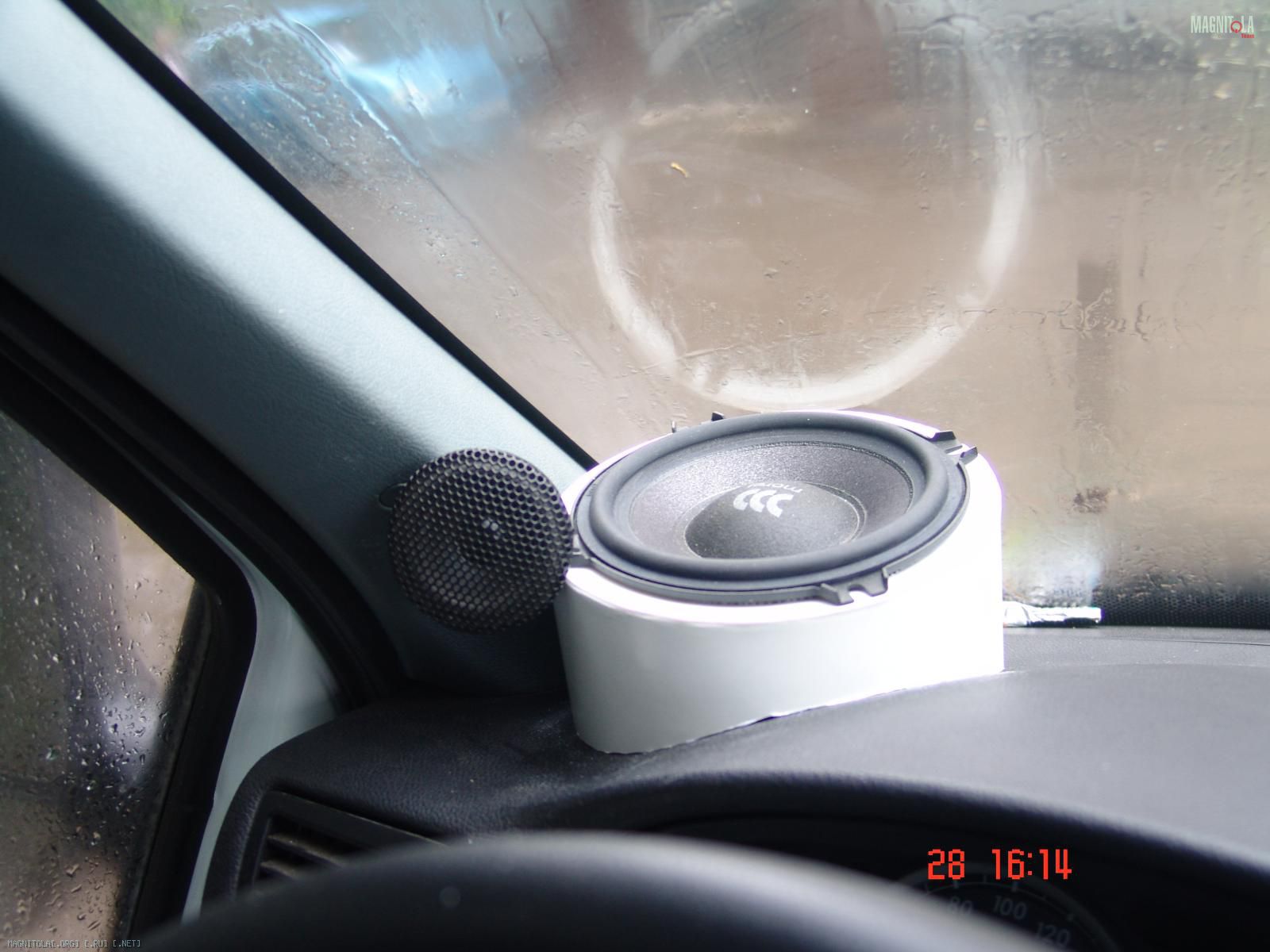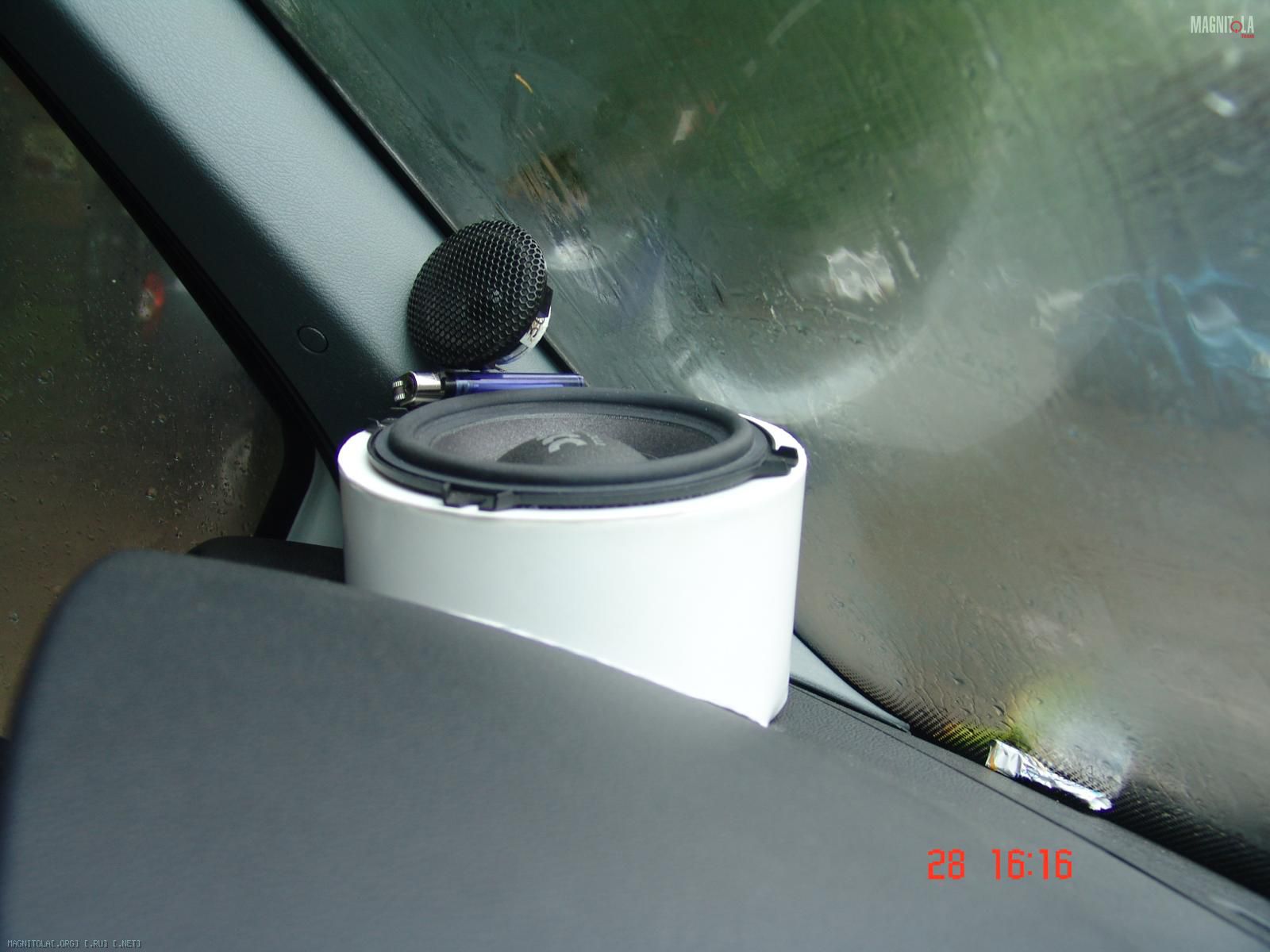 СЧ с большим доворотом на стекло,нужно уменьшить прямой сигнал от динамика,ВЧ на стойку в зону центра отражения СЧ динамика.