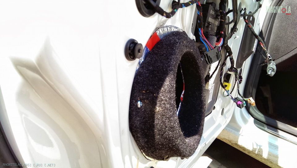 В двери все отверстия кроме тех куда защелкиваются клипсы закрыты. Я имею ввиду что динамик недостаточно близко распологается к самой пластиковой обшивке двери. На ней есть кольцо из полиуретана, которое при установке обшивки на место прижимается к динамику. А тут подиумы с небольшим доворотом, поэтому динамик может играть под пластик. Может быть стоит заменить подиумы?