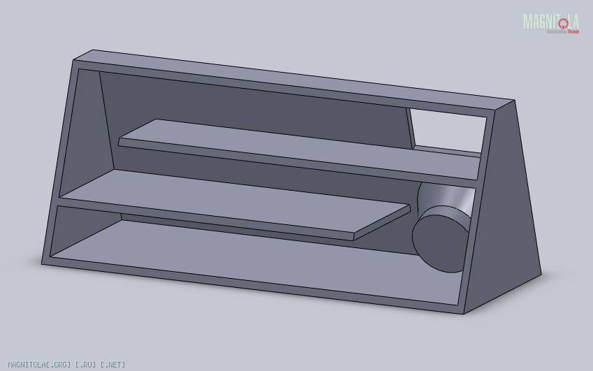Эскиз ЧВ без задней стенки. Есть где то расчеты в Hornresp. Под Урал расчитывал. И пришлось с размерами сечений поиграться, а то горбик не выправлялся.