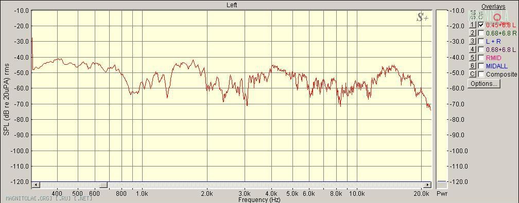 Попробовал перенести микрофон на правую сторону и замерить левую уже так. Результат лучше. Хоть по центру садись)))