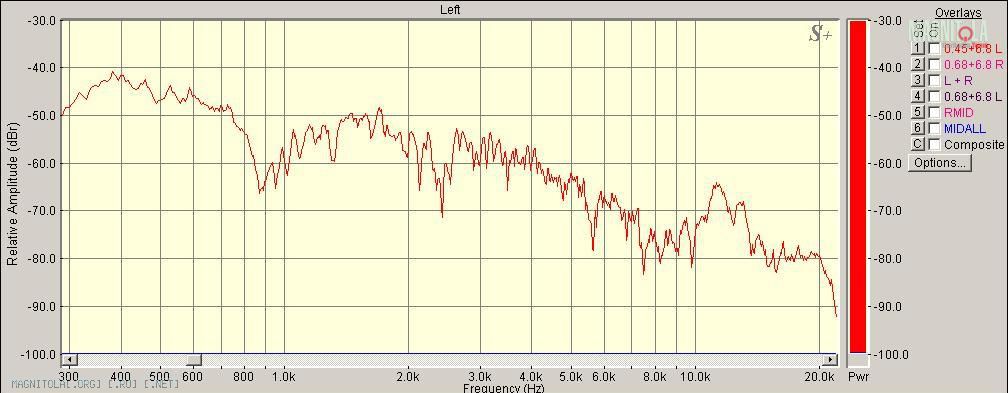 Это все левый канал ибо элементов только на один. Плюс на водительском месте сидит помощник, по возможности отклонившись вправо... ибо одному мне там несподручно было. Но при нужде смогу перемерить.