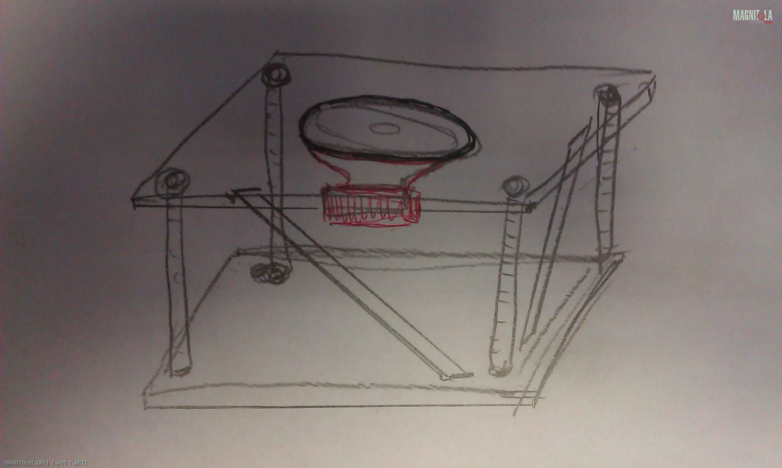 Если овалу нужно играть во фри-эйре, а не в ящике, можно-ли сделать конструкцию, как на рисунке например. Вроде короткой акустической полки, два листа фанеры, соединённых между собой шпильками и укосинами для жёсткости. И поставить их на пол между передними и задними сиденьями. Или это полный бред? Прокомментируйте пожалуйста.