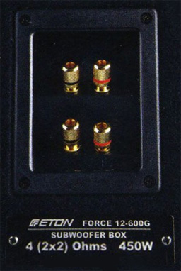 У сабвуфера 2 катушки по 2 Ом, усилитель может выдать 600Вт.